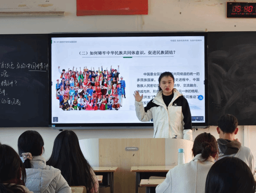 为深入推进铸牢中华民族共同体意识教育融入校园生活,按照学校党委统战部关于《开展铸牢中华民族共同体意识宣讲“七进”的工作方案》的要求,马克思主义教学部第二党支部统战委员何溢走进思政课堂,开展“铸牢中华民族共同体意识”专题宣讲活动,学生积极参与,现场氛围热烈。