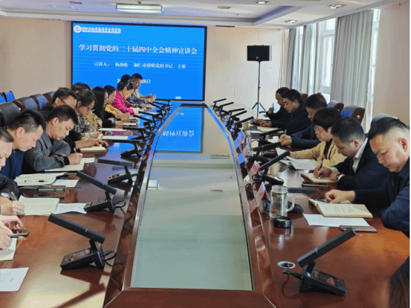 11月28日下午,铜仁市侨联党组书记、主席杨劲松应邀到我校专题宣讲党的二十届四中全会精神。本次宣讲会由学校统战部组织,校留联会、侨联全体成员,校知联会代表以及部分党外人士共同参加学习。宣讲会由学校党委委员、统战部部长李燕主持。宣讲会上,杨劲松主席围绕党的二十届四中全会的重大意义、核心要义和精神实质进行了系统深入的阐释。整场报告内容丰富、重点突出,既有理论高度,又有实践指导意义,为与会人员深刻理解和准确把握全会精神提供了重要辅导。与会人员认真聆听,纷纷表示将以此次学习为契机,进一步把思想和行动统一到全会精神上来,立足本职岗位,积极建言献策,为学校高质量发展汇聚更多智慧与力量。铜仁幼专留联会副会长、侨联副主席、初等教育系主任杨胜茂表示:“杨主席对党的二十届四中全会精神的宣讲,内容深刻、重点突出,紧密结合侨联工作实际,是一次高质量的宣讲。通过学习进一步深化了对党的二十届四中全会精神的认识,系统深刻领会全会精神的核心要义和实践要求,切实把思想和行动统一到党中央决策部署上来,为下一步人才培养及侨联工作提供了切实指导。”