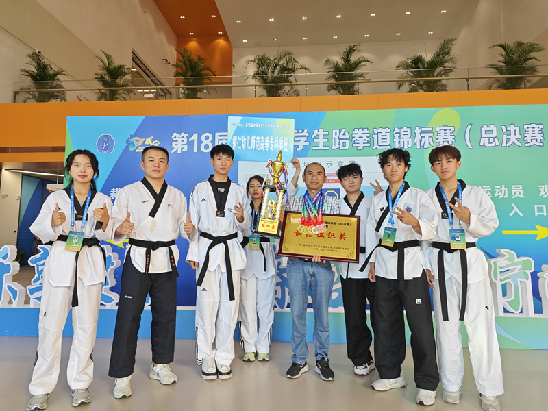 我校跆拳道代表队在比赛中不畏强手、敢打敢拼、顽强拼搏,不仅为我校赢得了荣誉,更是展现了我校体育专业的教学成果,将更好助力我校“双高”建设,是推进岗课赛证融通综合育人的直观体现。下一步,将进一步推动学校应用型人才培养体系建设,完善学校体育专业“教学—训练—竞赛”一体化的实践技能培养体系,提高学校跆拳道运动的竞技水平,激发同学们学习和参与竞技体育项目的热情,弘扬积极进取、健康向上的校园文化,提升铜仁幼儿师范高等专科学校在全国高校中的知名度与美誉度。