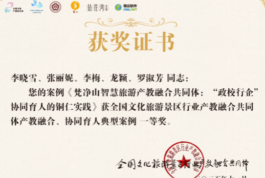 同期,我校申报的《梵净山智慧旅游产教融合共同体:“政校行企”协同育人的铜仁实践》案例,在全国文化旅游景区产教融合、协同育人典型案例评选中荣获一等奖。该案例系统总结了我校与地方文旅企业在人才共育、课程共研、基地共建、资源共享等方面的创新实践,形成了具有可复制、可推广价值的“政校行企”协同育人“铜仁模式”,为全国文旅景区产教融合发展提供了重要参考。