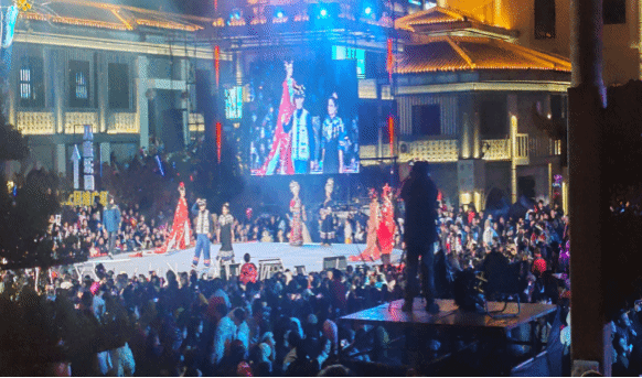 此次活动由铜仁市文旅局主办,铜仁幼专与周逸群烈士陈列馆、铜仁博物馆、铜仁市图书馆、铜仁市美术馆、铜仁市戏剧家协会等单位联合承办,是当地元旦期间的重点文化惠民项目。活动现场,铜仁幼专中、外师生化身非遗文化传播者,将铜仁本土苗族、侗族等非遗元素与艺术表演深度融合:走秀展演中,特别是我校留学生们身着特色非遗服饰,步履间勾勒出黔东民族文化的独特韵味;非遗NPC巡游里,师生们以沉浸式互动形式,让游客近距离感受铜仁非遗的魅力。这场融合了传统与现代的文化展演,不仅成为中南门历史文化旅游区的亮眼风景线,更彰显了多元文化交流的生动实践。