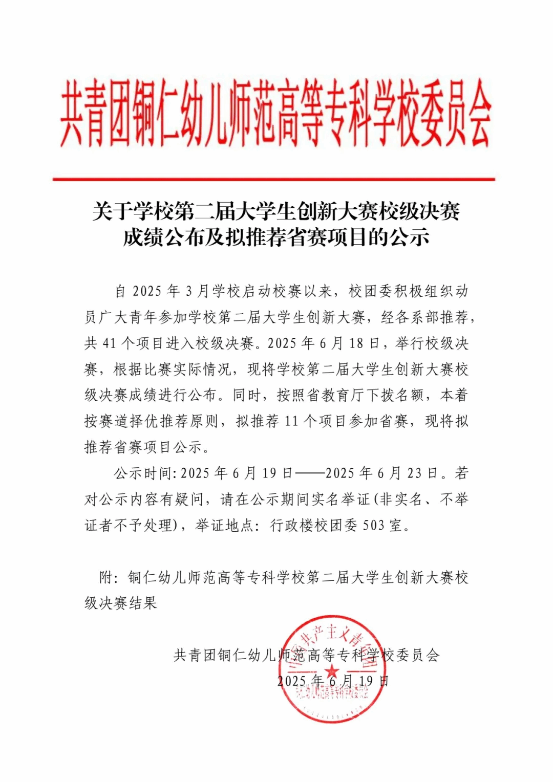 学校第二届大学生创新大赛校赛结果公布及省赛推荐公示