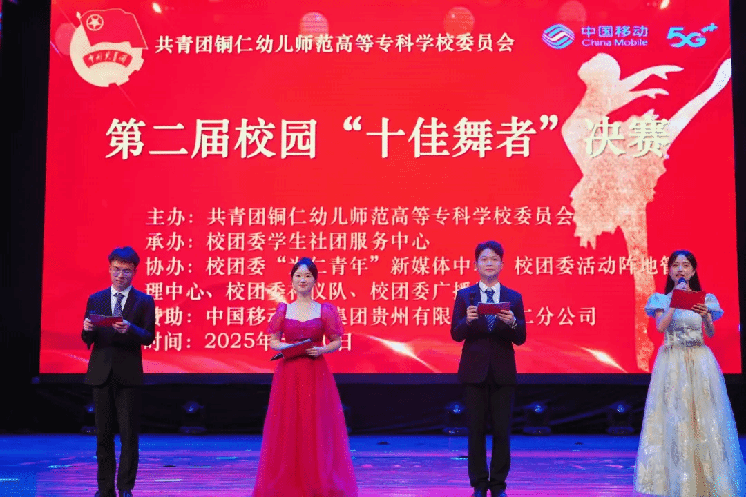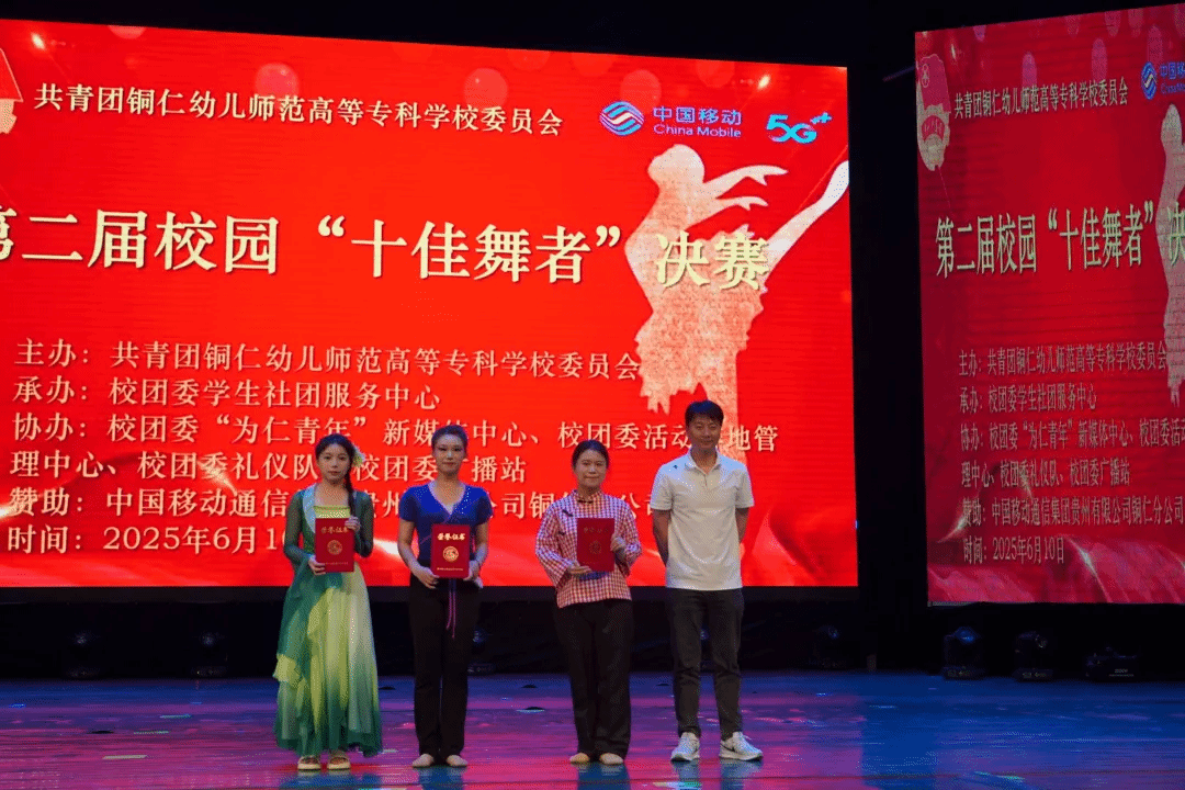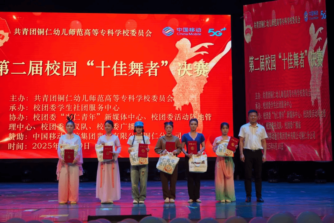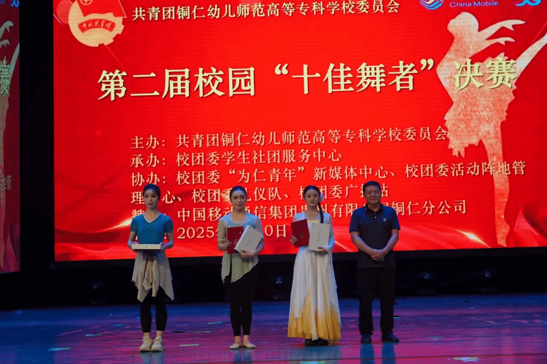 灯光璀璨,舞步翩跹。2025年6月10日晚,第二届校园“十佳舞者”大赛决赛于我校大学生活动中心举行。校党委委员、副校长谭欧阳、校团委书记车璞出席比赛并为选手颁奖,贵州健康职业学院团委书记张铭峰、中国移动通信集团贵州有限公司碧江分公司副总经理钟慧应邀观赛。