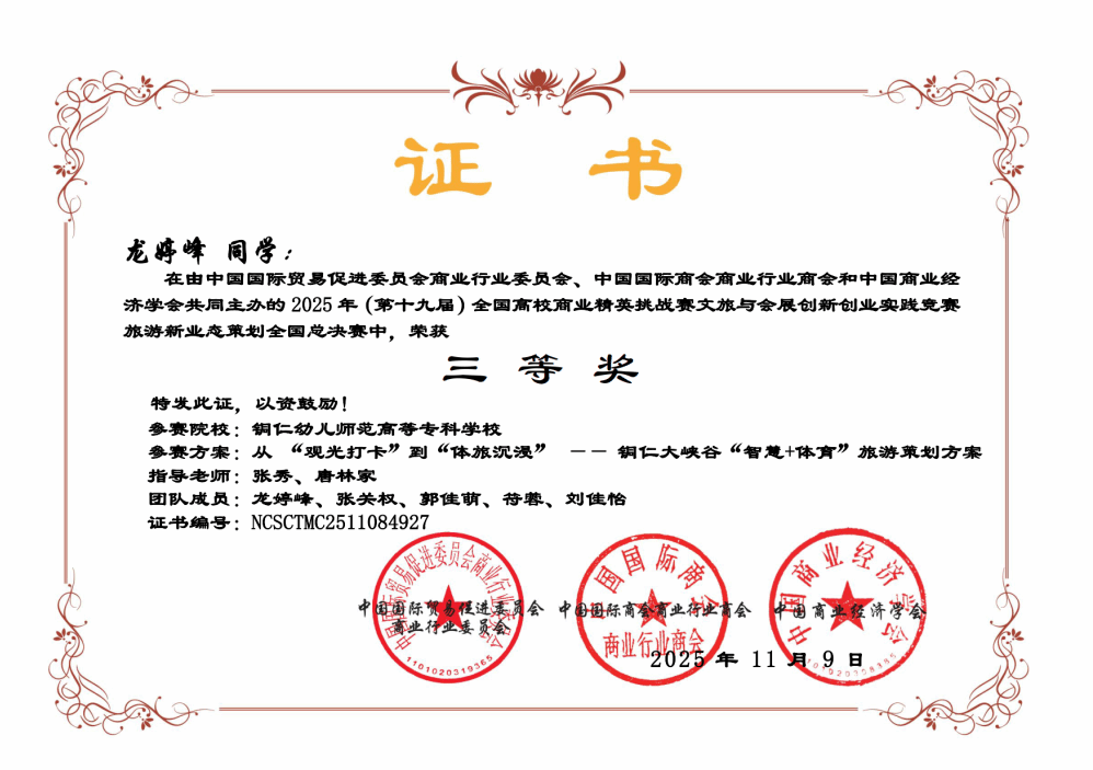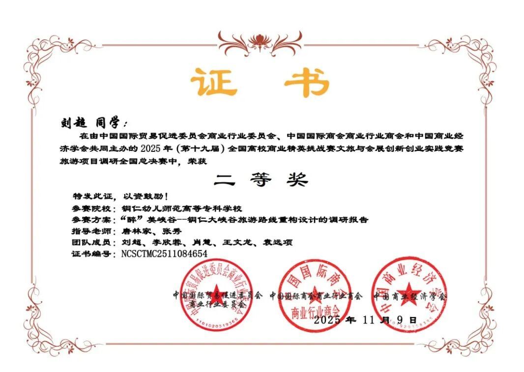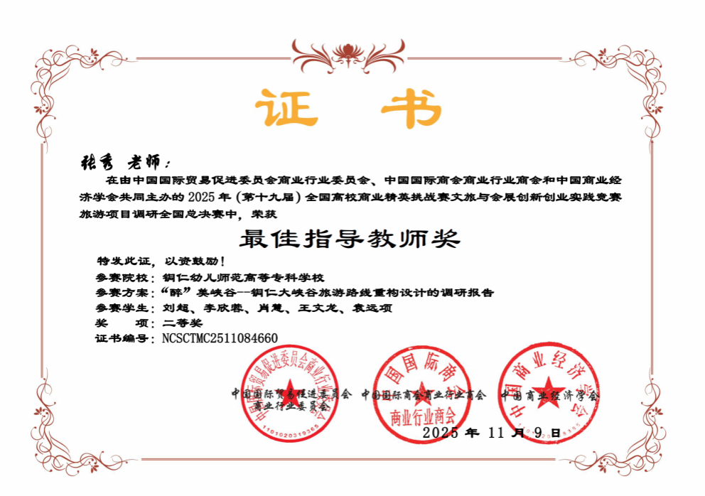 近日,2025年(第十九届)全国高校商业精英挑战赛文旅与会展创新创业实践竞赛全国总决赛圆满落幕。我校国际教育系参赛团队表现优异,共斩获全国二等奖1项、三等奖1项,并荣获最佳指导教师奖。
