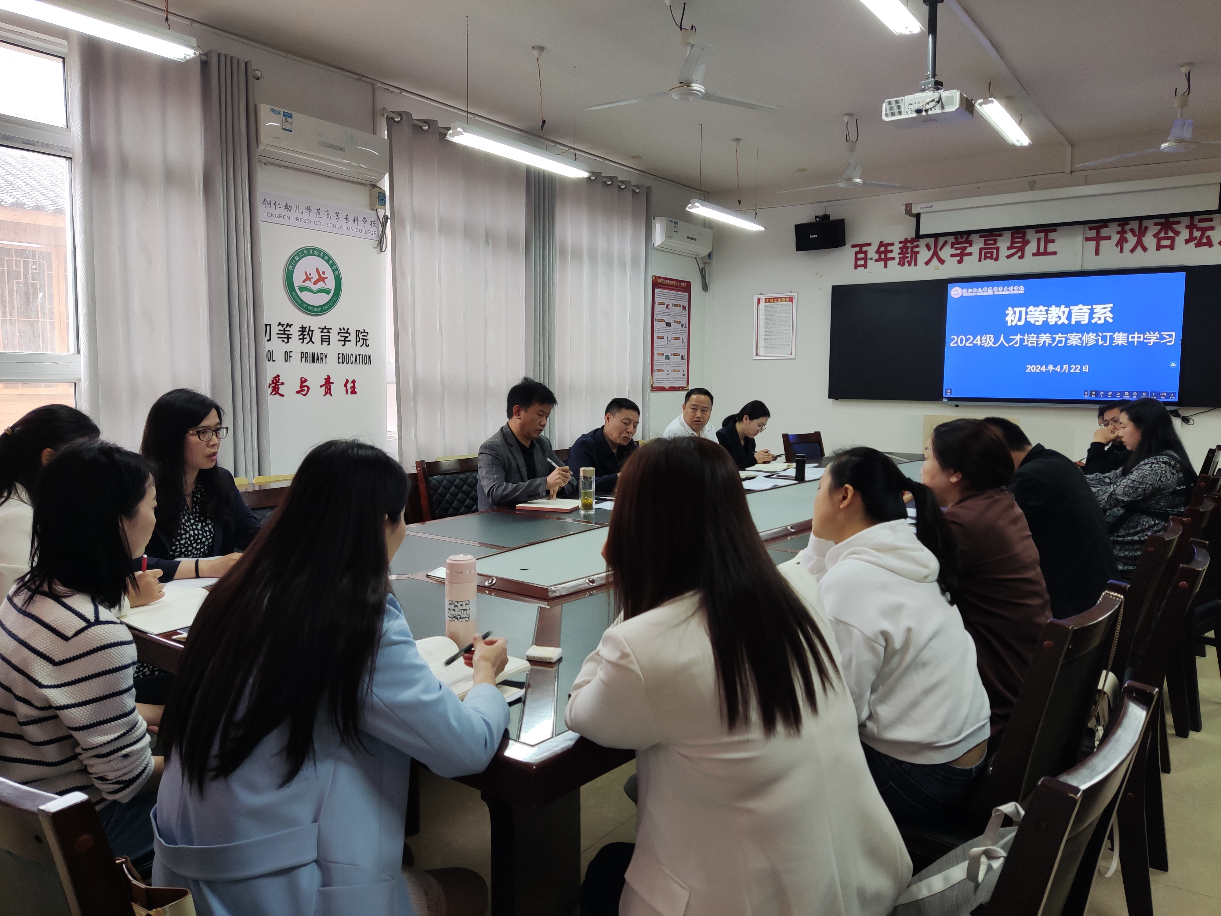 4月22日,初等教育系组织召开了2024级人才培养方案修订集中学习会。初等教育系党政班子成员、各科室负责人、各专业负责人等参加了会议,会议由卢道静书记主持。