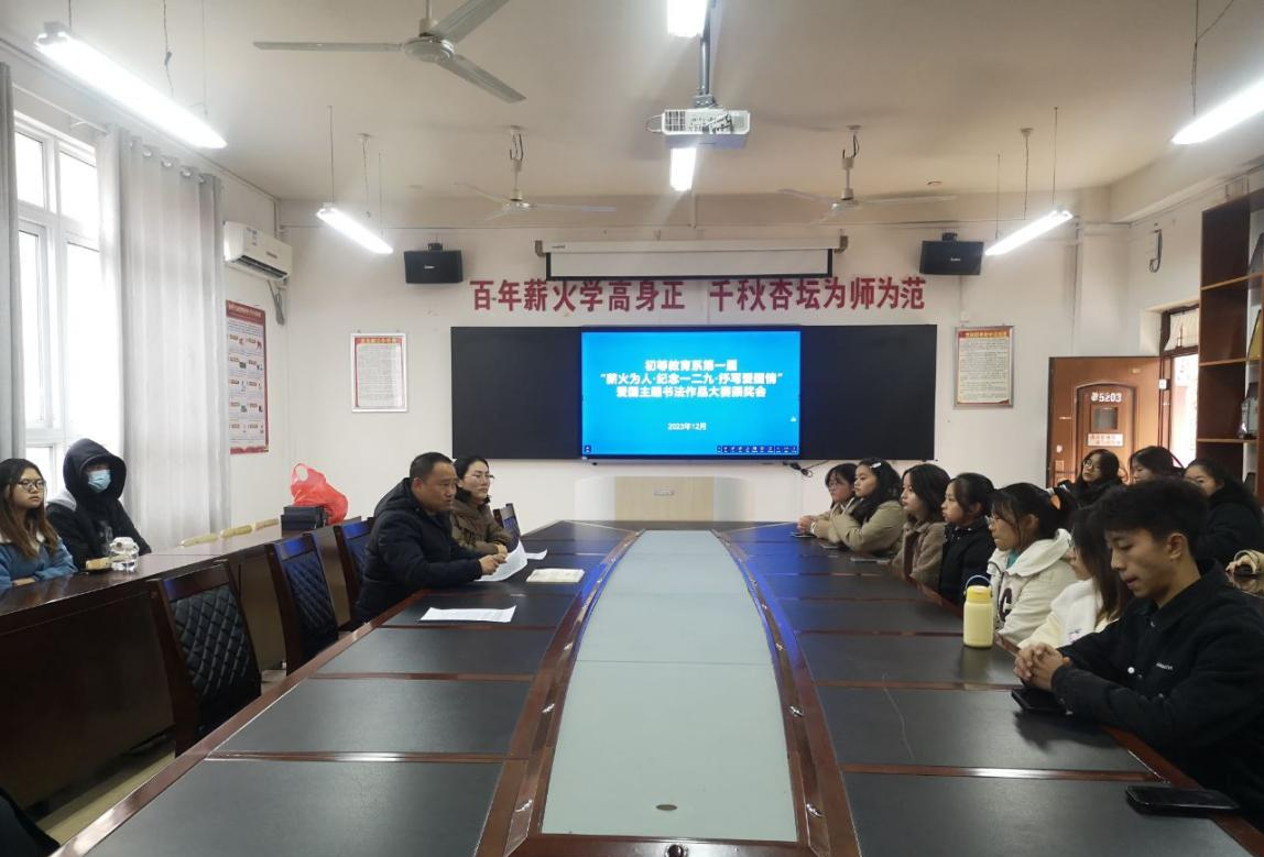 为纪念“一二·九”学生爱国运动85周年,弘扬爱国主义精神、传承中华传统文化艺术,增强广大学生的民族自豪感和爱国情怀。12月9日,初等教育系举行了以“薪火为人·纪念一二九·抒写爱国情”为主题的书法作品大赛,初等教育系2022级和2023级学生参加了本次比赛。