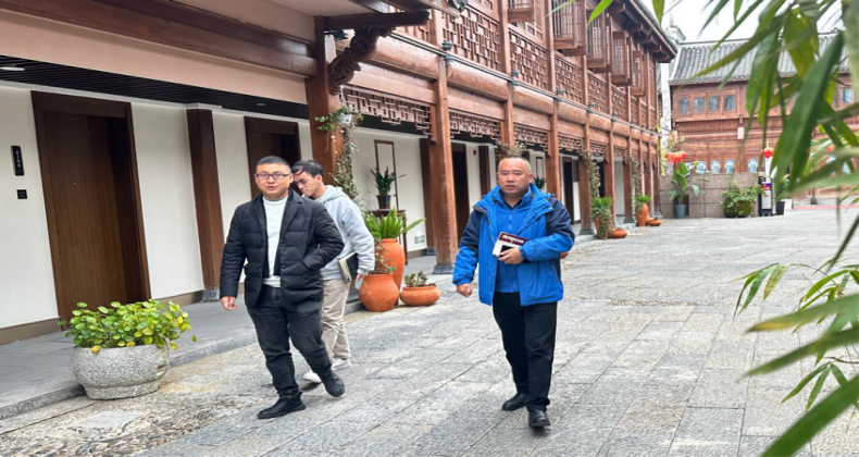 谢毅一行在中南门古城景区三江文化旅游有限公司调研