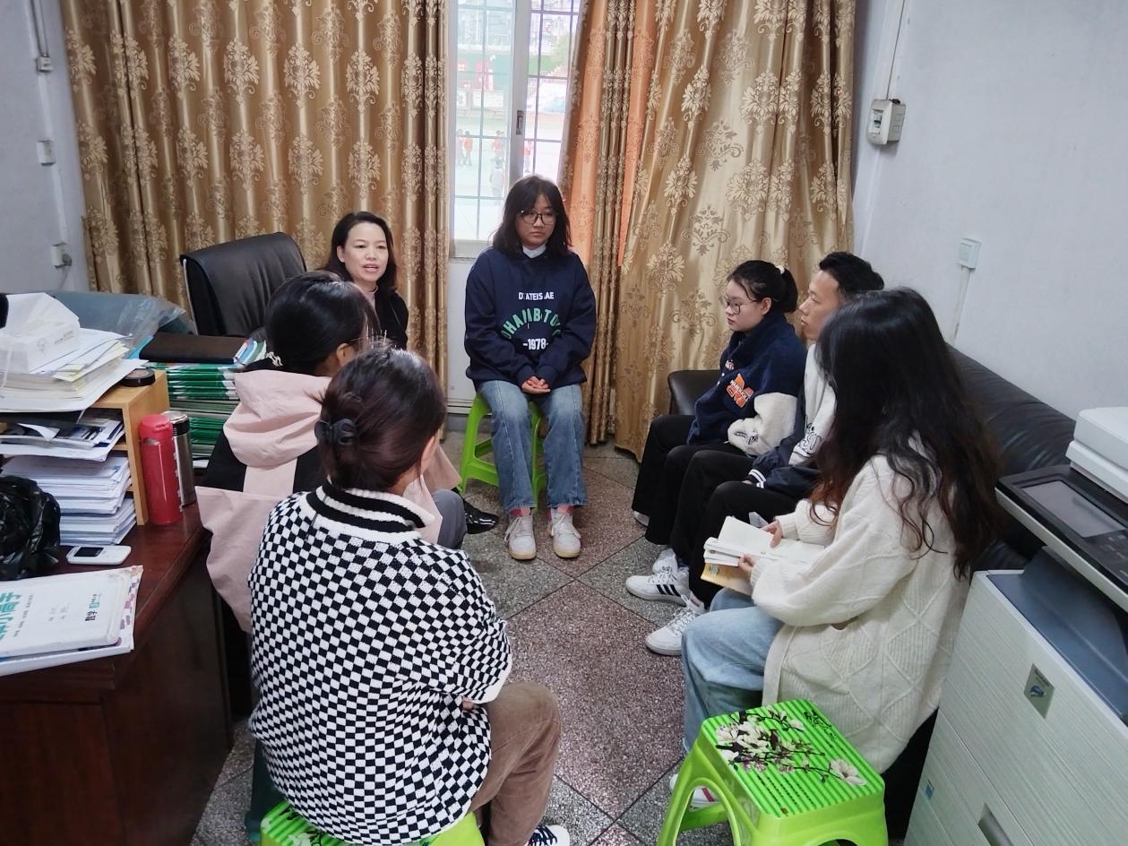 代英在与实习学生交流过程中,对同学们得体的着装、优雅的谈吐表示充分肯定。(图/孙希娟 文/杨雯)