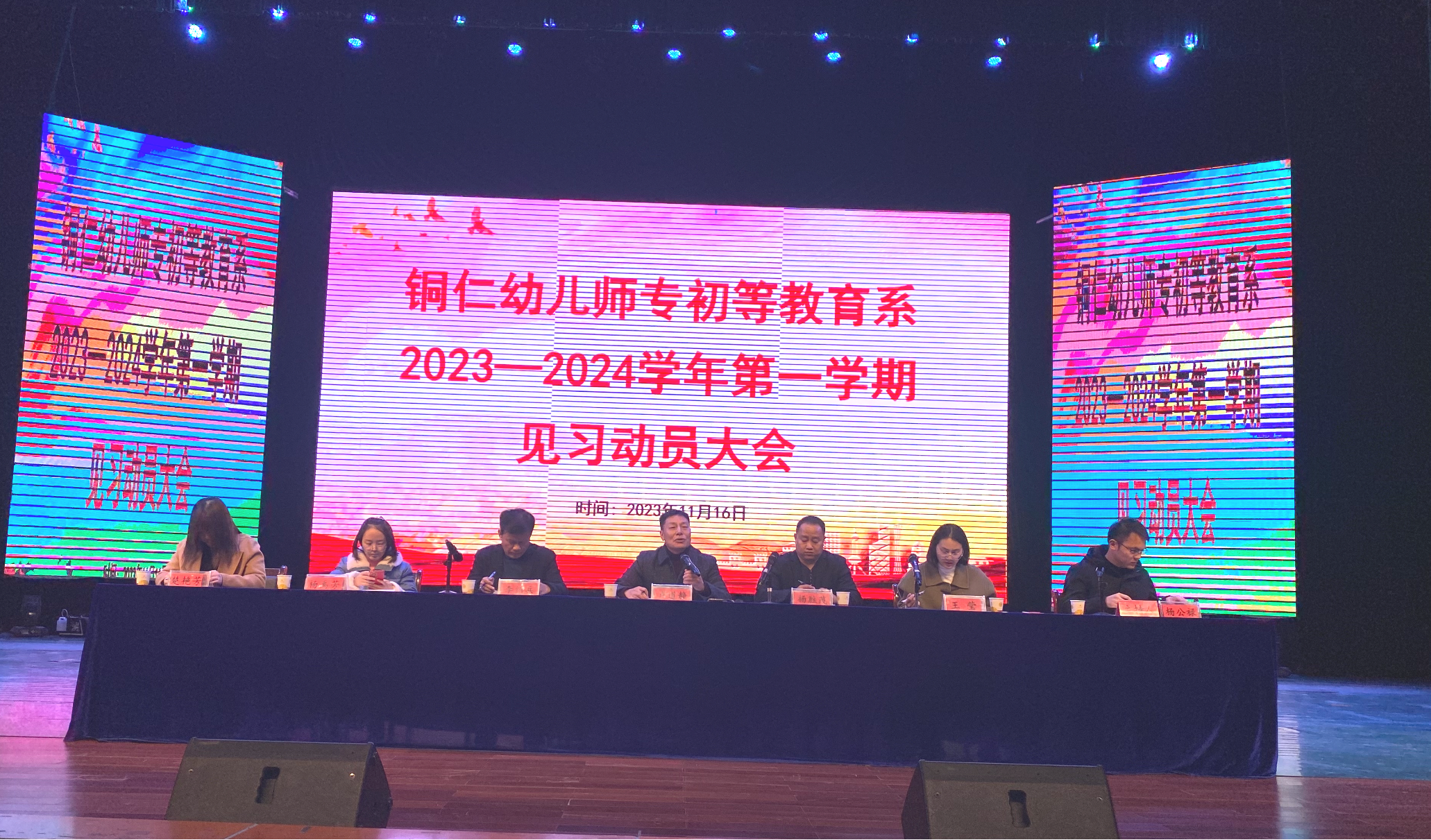 为确保本学期见习工作的顺利进行,11月16日下午,我系在大学生活动中心组织召开了2023-2024学年度第一学期见习动员大会。动员大会由初等教育系教务科副科长杨公禄主持,系党总支书记卢道静、主任杨胜茂、党总支副书记李绍兵、副主任王莹、学生科副科长杨禹芳、现代家政服务与管理专业主任楚艳芳、见习班班主任(辅导员)、带队指导教师及全体学生参加见习动员大会。