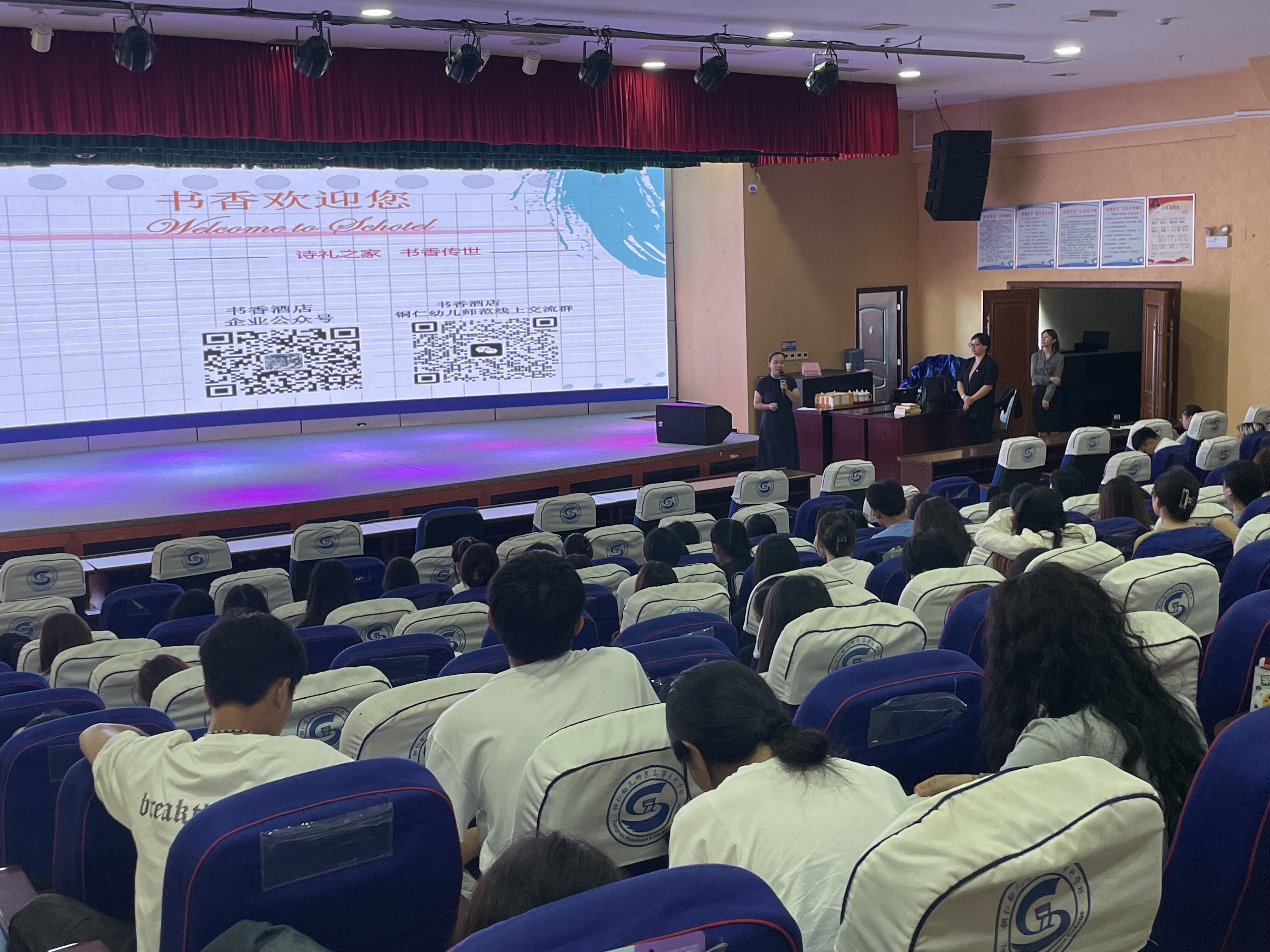 为推进校企深度合作,强化教育教学和专业建设高质量发展,并进一步为酒店管理与数字化运营专业学生提供更合适与更精准高效的职业能力培养路径,9月18日上午,我系在行政楼二楼学术报告厅举办了书香酒店集团“订单班”宣讲会。来自苏州书香酒店投资管理集团总经理助理、人事总监唐旭华、人事行政部培训经理姚晶,星海书香世家酒店总经理赵璟譞,酒店管理及数字化运营专业教研室成员与2022级酒店专业全体在校学生参加会议。会议由国际教育系主任张丽妮主持。