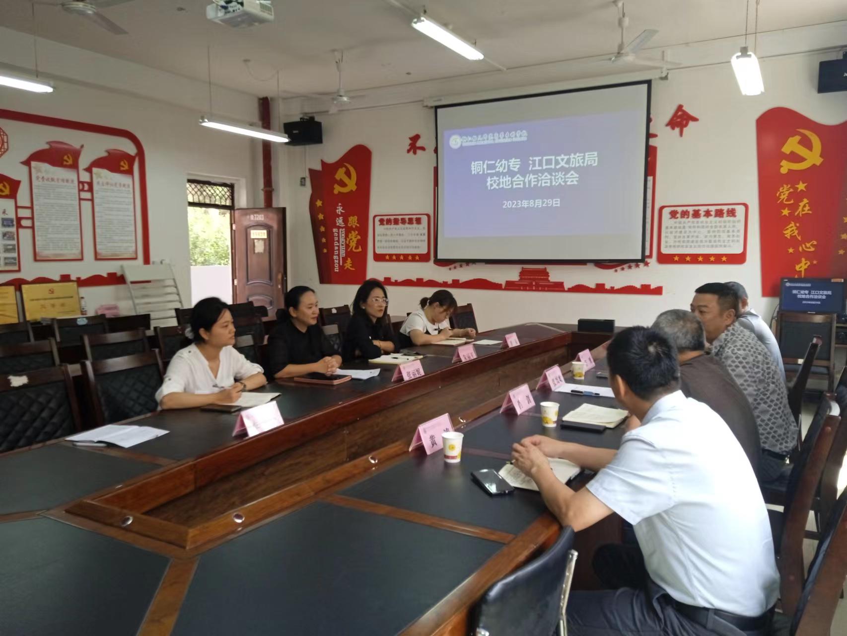 为进一步推动校地合作,实现校地双方互惠互利、合作共赢,8月29日江口县旅游产业化工作专班组与铜仁幼儿师范高等专科学校国际教育系在会议室进行了合作意向洽谈。江口县旅游产业化工作专班副组长张兴屹、肖剑,国际教育系系主任张丽妮、副主任朱丽平等同志参加此次会议。