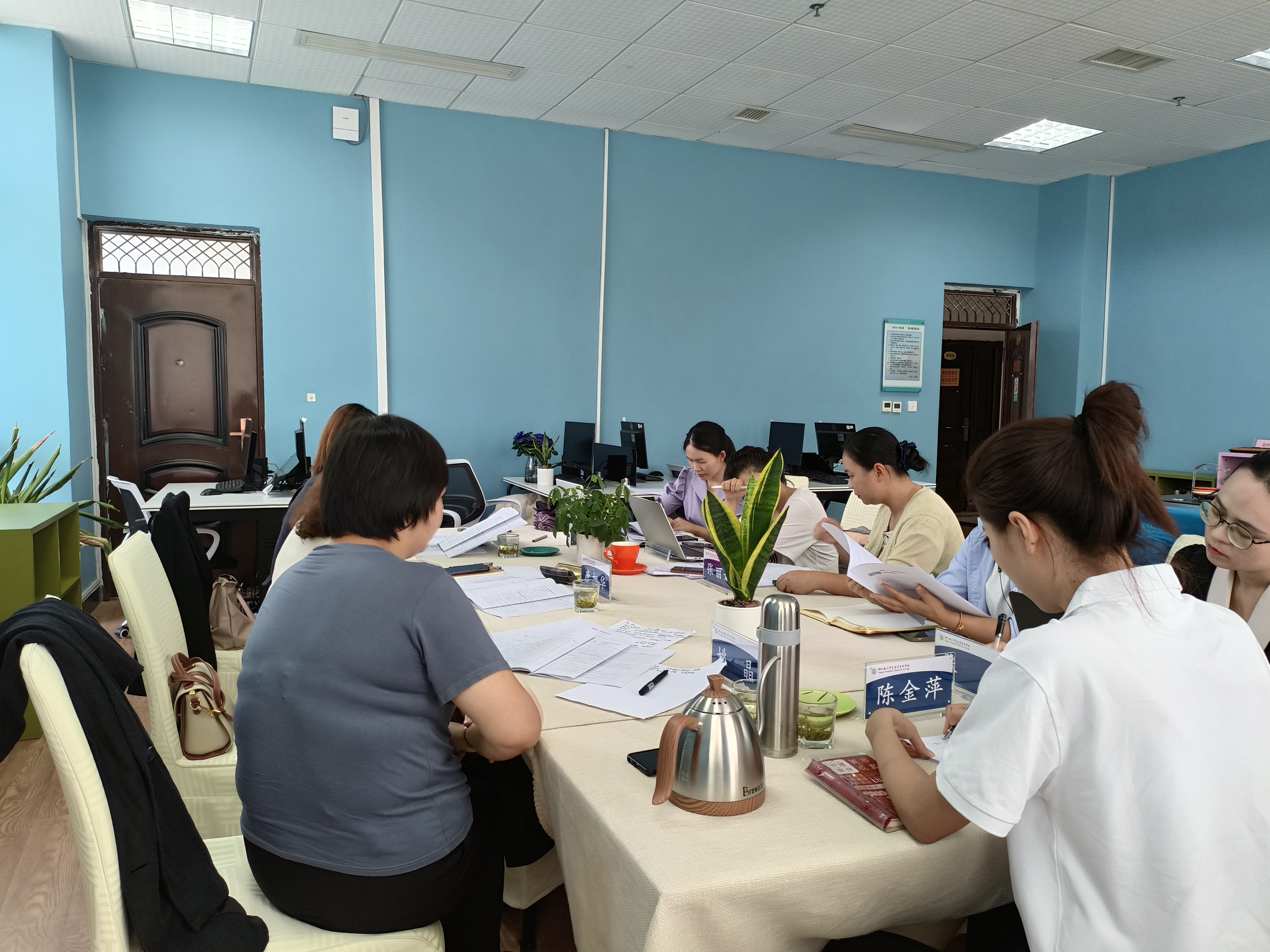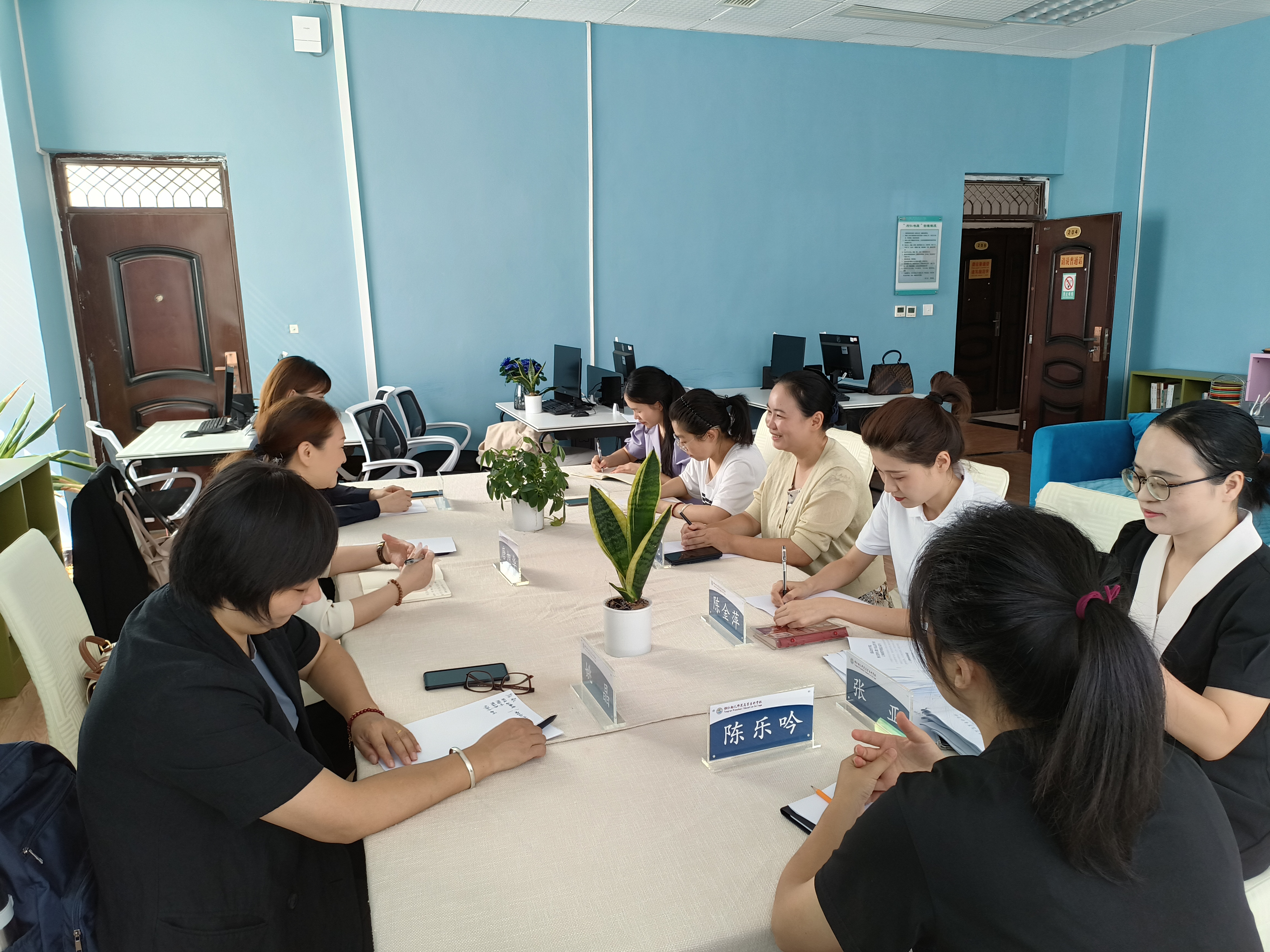 研讨中,书香酒店管理集团唐旭华、赵璟譞、姚晶协还同教研室与会人员一道对酒店管理及数字化营运专业已建成的在线开放精品课程《客房服务与管理》进行了论证,对计划建设的在线开发精品课程《咖啡服务与制作》进行可行性分析。