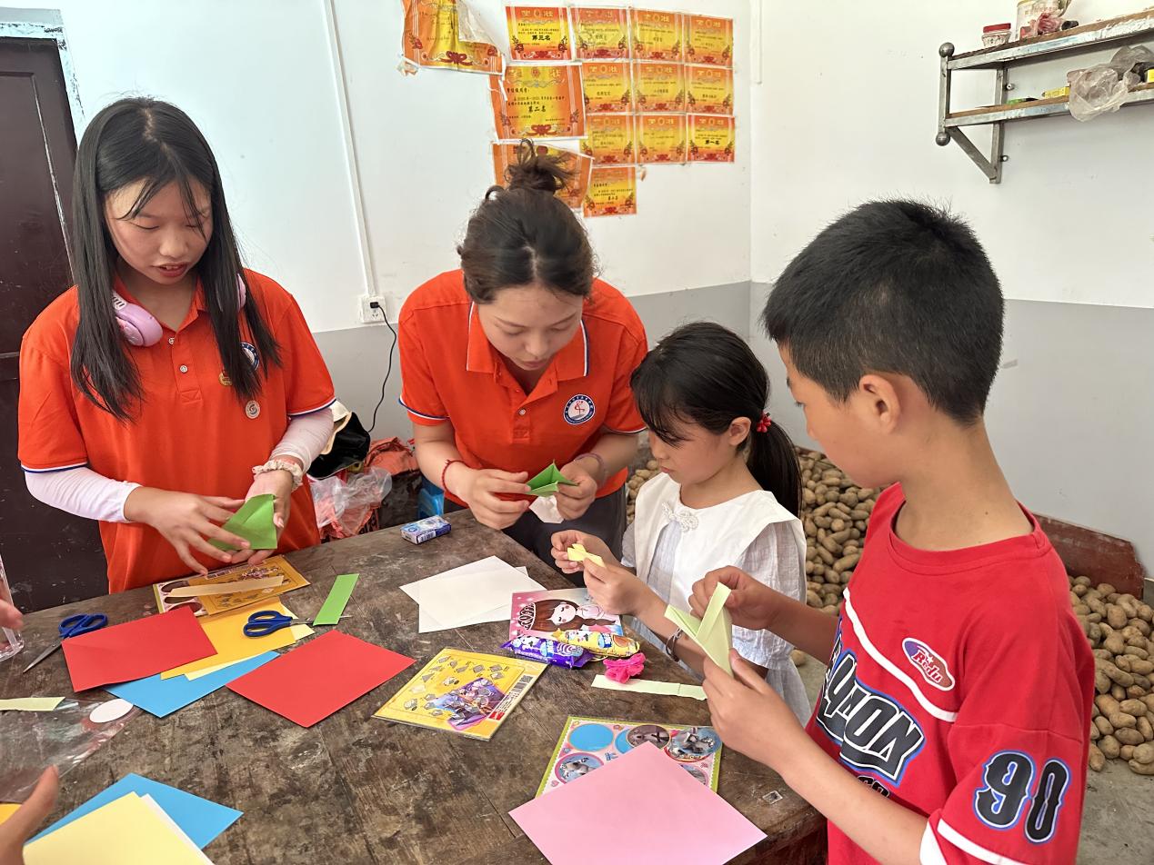 7月13日下午,艺术与体育教育学院“向阳花开·与美同行”志愿服务实践团队,前往坝黄镇竹田村竹田湾曾佳俊和曾慧虹的家里开展志愿服务。同学们教孩子们折纸,折小花和小船,还教孩子们跳舞和下五子棋。