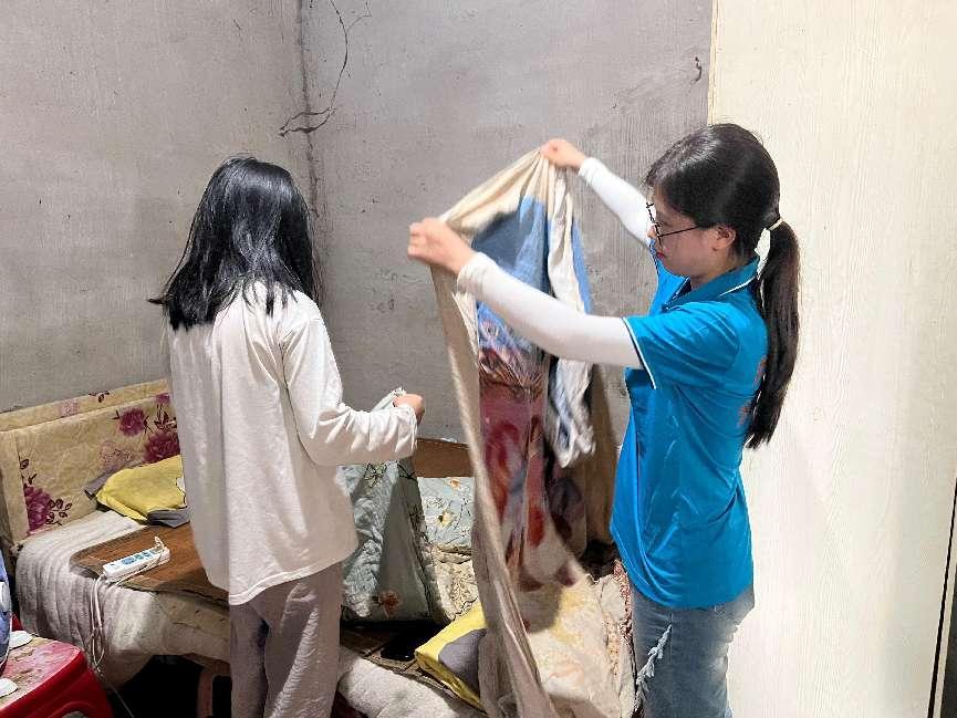 志愿者对困难家庭进行走访调研,了解家庭实际情况,有针对性的帮扶。志愿者帮忙打扫房间、整理衣服,随后进行心理健康科普教育,开展一对一心理疏导,倾听她的心声,搭建起心与心的桥梁,解开困扰许久的心结,最终小女孩勇敢走出家门。