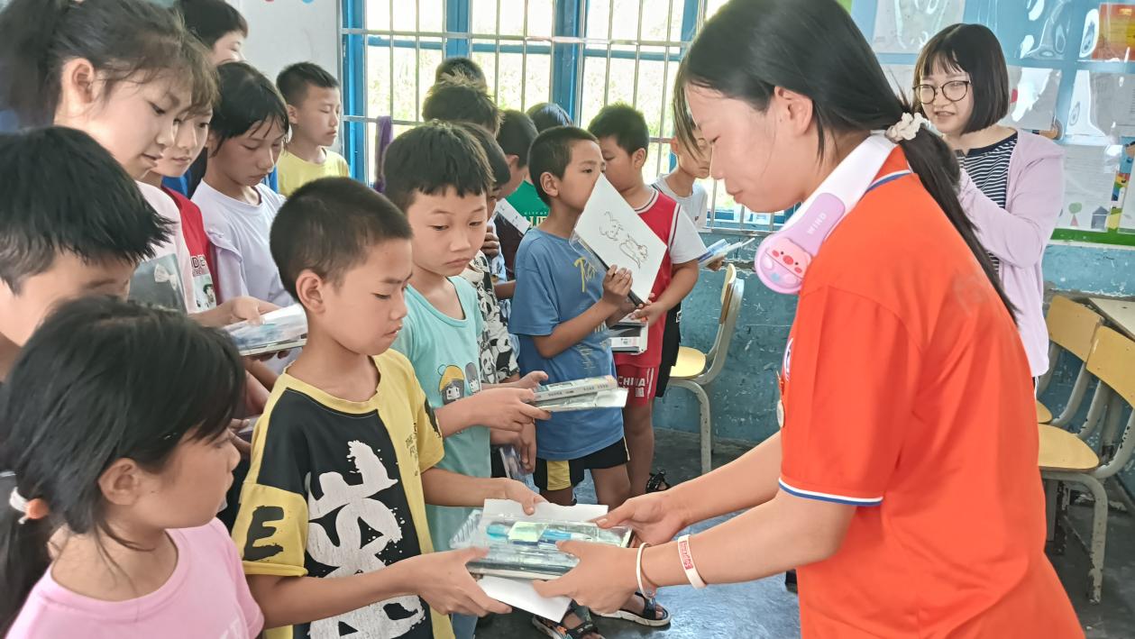 最后,志愿者团队向竹田小学的学生都捐赠了各种学习用品,鼓励孩子们要好好学习,努力成为报效祖国的栋梁之才。同时也让志愿者们更加深入了解了弘扬中华美育精神的重要性,积极发挥青年大学生的祖国建设生力军的作用,响应好国家美育工作的号召。(文/图 严萍 吴敏)