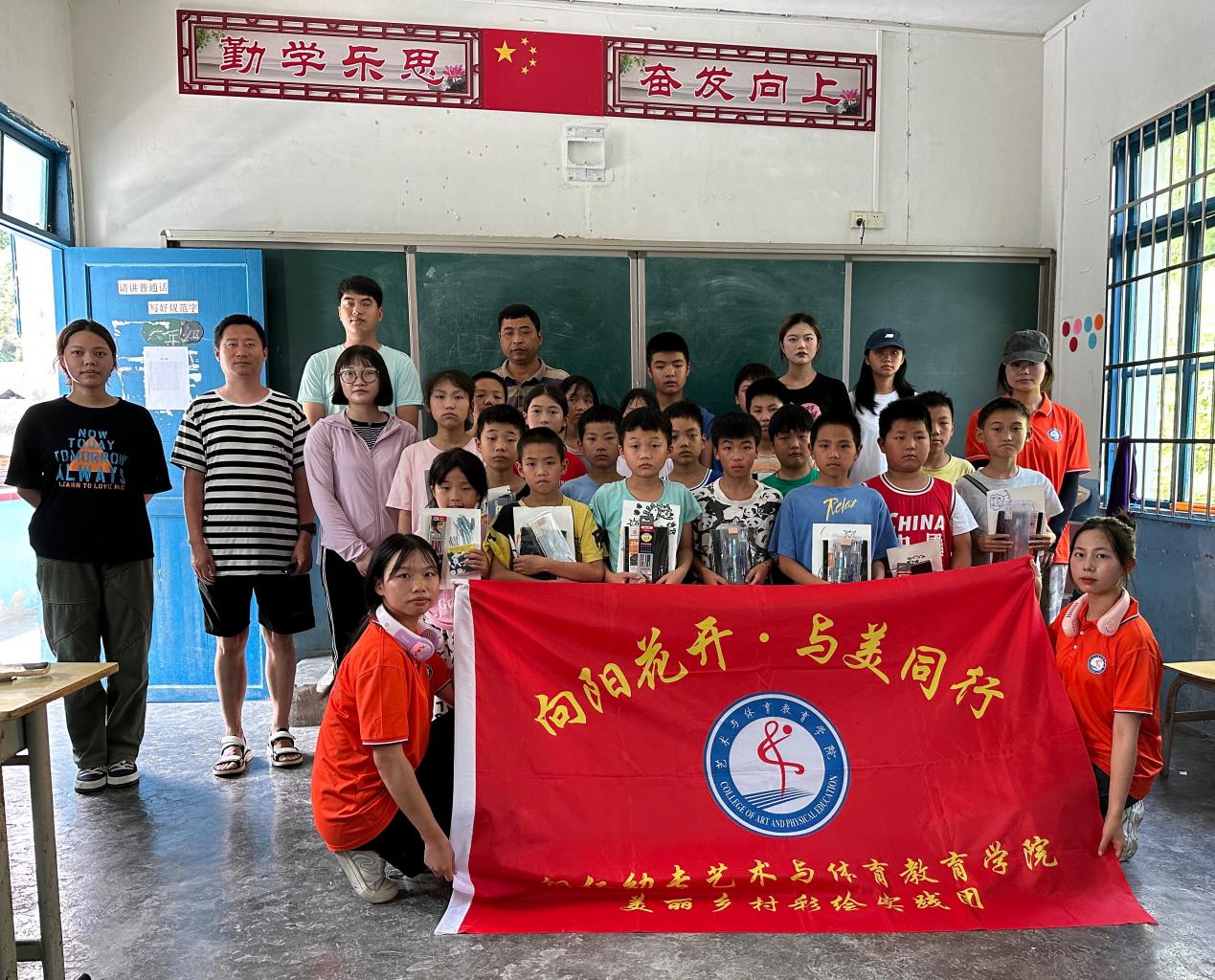 7月14日,铜仁幼儿师专艺术与体育教育学院“向阳花开·与美同行”志愿服务实践团队,前往坝黄镇竹田村竹田小学开展美育教学活动。
