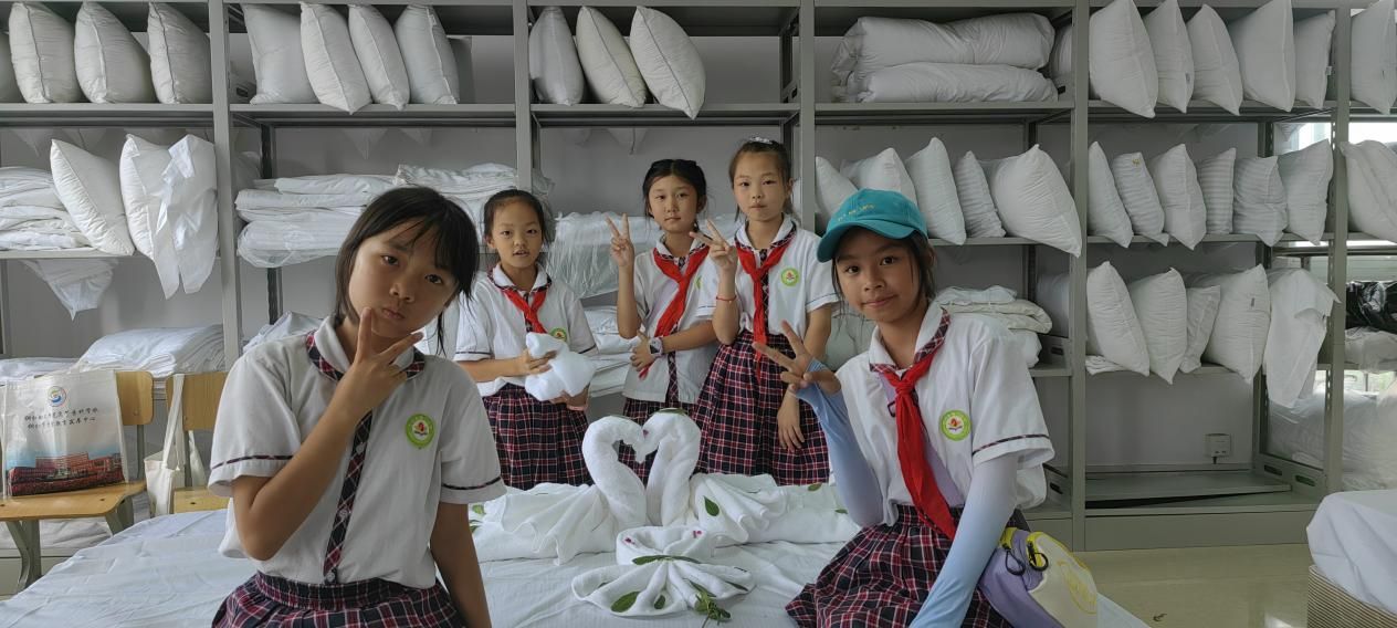 我校陶艺工作室老师邓伟对30名学生就学习拉坯、泥塑、烧制等陶瓷的传统制作工艺进行了详细的讲解及指导学生实操,让学生们体验陶艺制作的乐趣,接受传统文化的熏陶与洗礼,进一步营造了校园浓厚的传统文化氛围,让中华优秀的传统文化真正从娃娃抓起,从小培养孩子们文化自信心和民族自豪感。国际教育学院酒店教学团队孙玲艳、杨萍、李倩三位老师,指导学生们制作餐厅摆台中口布折花和中式铺床,切实锻炼了小学生的实践动手能力,提升了团队协作水平。让学生们感受了劳动创造的乐趣,厚植了热爱劳动的观念,增强了学生们不断创造的劳动精神,深刻认识感恩父母。在艺术与体育教育学院张明老师带领下,走进我校美术展览馆,让小学生们身临其境地感受艺术之美,从观展中开阔思维、取经学习,提升美术素养,将美育精神与社会主义核心价值观教育相融合,让孩子们的文化自信和家国情怀在美的熏陶化育中生根发芽。
