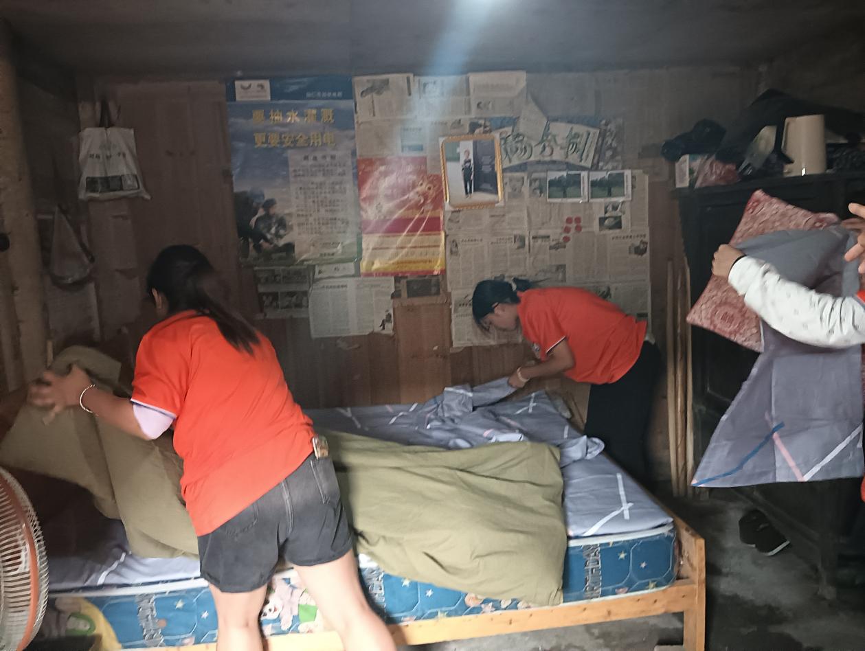 本次志愿服务对象主要以五保孤寡独居老人为重点。志愿者服务团队来到杨秀八老人家,考虑到独居老人岁数大,行动不便,志愿者们开展爱心大扫除,对老人家中的物品进行统一清洗和整理,还为老人换上了帮助购买的床上用品。在拉家常的过程中,了解老人身体健康状况及目前的困难,并嘱咐他要积极乐观地对待生活,要保重好身体,志愿者们根据老人的喜好为他准备了可口的饭菜。杨秀八老人激动地说:“感谢大家对我的关心和帮助”。志愿服务团队又前往老人家庭开展志愿服务,了解他们的生活情况和健康状况,倾听他们的心声,关注他们的思想动态,及时对他们进行帮助。