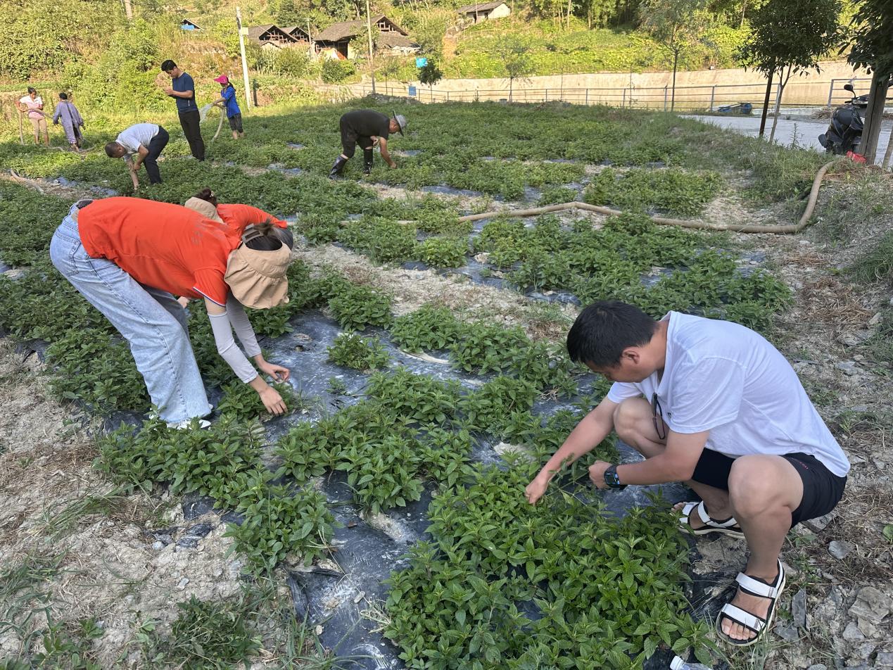 7月16日上午,14名志愿者在竹田村驻村第一书记黄麟杰和村支部书记陈建军的带领下,来到了仙草种植示范基地。仙草种植是坝黄镇借力莞铜东西部协作平台,因地制宜规模发展的订单产业,也是本村的重点支柱产业之一,陈建军全面介绍了从仙草栽培、管护技巧到采收的过程。志愿者们一个个仔细聆听、认真学习,基本熟悉了仙草管护的操作要领。随后,志愿者们顶着烈日,走进田间,为仙草除去杂草、施肥、浇水……,志愿者们学以致用,用辛勤的汗水浇灌着田野上的希望。