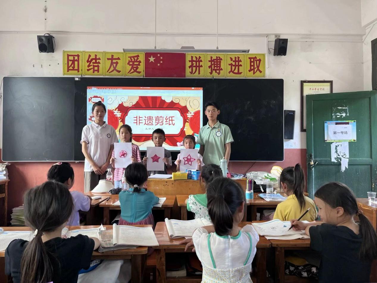 文化兴则国运兴,文化强则民族强。文化是民族的精神命脉,铜仁幼儿师专一直致力于传承、弘扬中华优秀传统文化,每年的艺术节、体育节等大型活动上,玉屏箫笛、摆手舞、土家金钱杆、花鼓舞等是必不可少的展演节目。本次暑期“三下乡”社会实践活动中,“为仁青年”们通过讲述剪纸脉络、示范剪纸制作流程、展示剪纸作品等方式,让孩子们在一系列的趣味互动中学习、了解非遗剪纸文化,自发、自觉地成为非遗文化保护行动者、非遗文化传承践行者、非遗文化弘扬后备军。