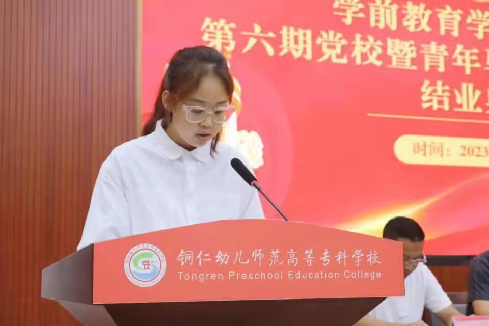 为深入宣传贯彻党的二十大精神,引导青年学生学习党的创新理论,武装头脑、指导实践,坚定理想信念,听党话、感党恩、跟党走。6月27日,学前教育学院举行第六期党校暨青年马克思主义者培训结业典礼。本次结业典礼由院党总支宣传委员王展才主持,院党总支书记卢道静,院党总支副书记、副院长代晓明,党总支纪检委员李银婷,第三党支部副书记李明出席,第六期党校培训班全体学员参加。