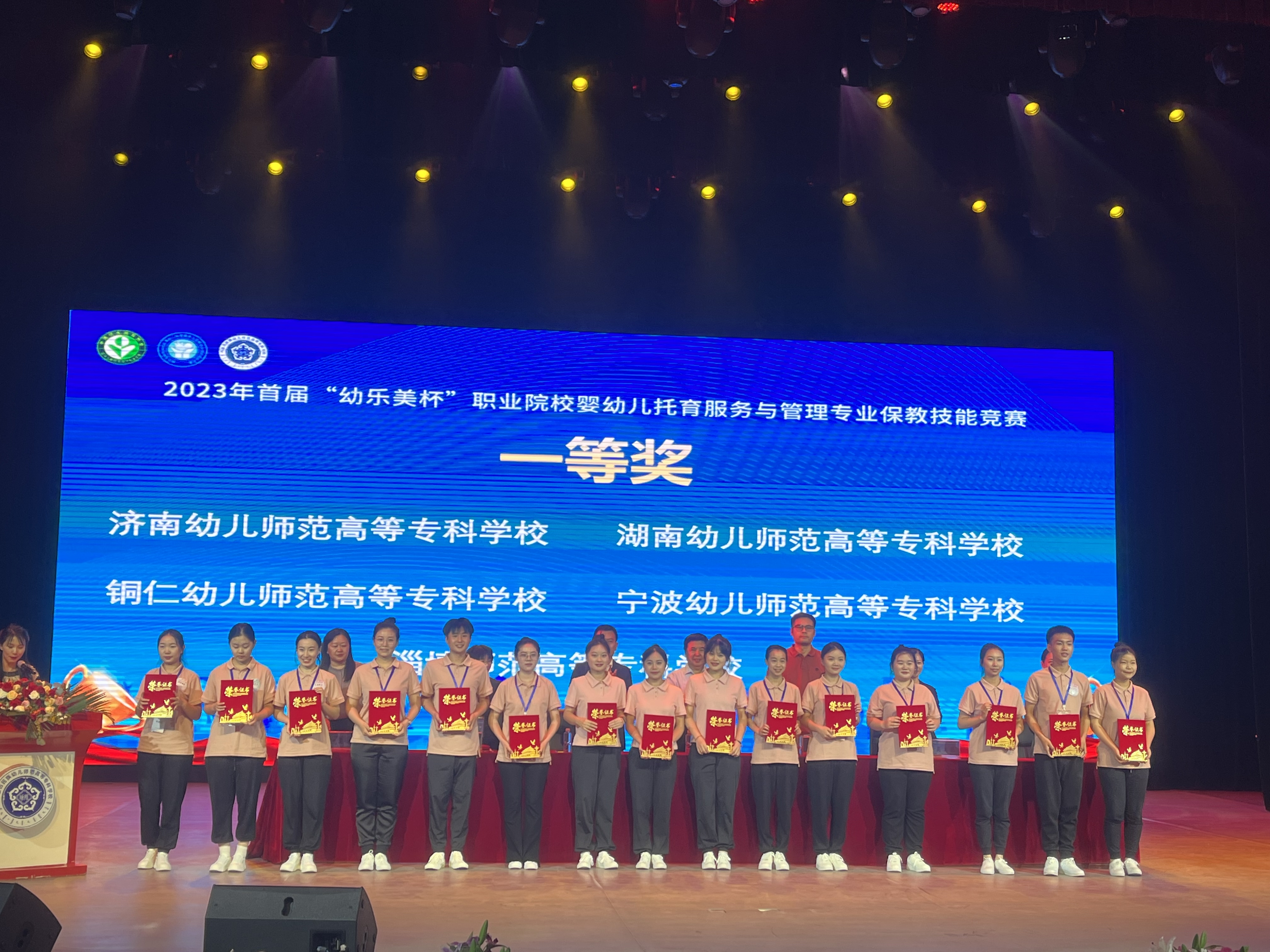 2023年6月29日—30日,全国首届“幼乐美杯”职业院校婴幼儿托育服务与管理专业保教技能竞赛在内蒙古民族幼儿师范高等专科学校进行。经过紧张激励角逐,我校参赛队伍取得一等奖的好成绩。
