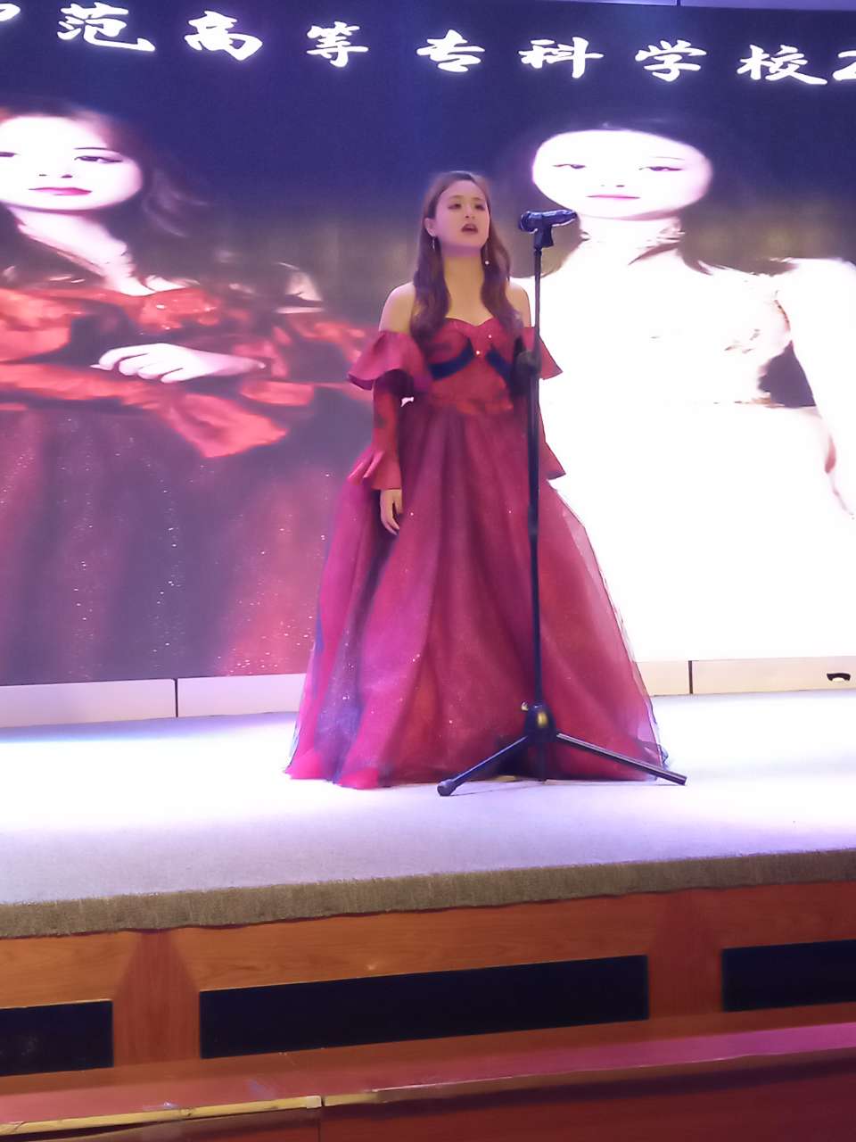 来自音乐教育专业的田冰、雷婷两位同学在台上展示了丰富多彩的声乐作品 ,比如传统文学古诗词艺术歌曲《菩萨蛮》《青玉案元夕》《虞美人听雨》《秋风词》;经典主旋律艺术歌曲《一颗心儿向着您》《生死相依我苦恋着你》《再唱洪湖水》《我一定要回去》;民族歌剧选段《沂蒙山我永远的爹娘》《清粼粼的水蓝莹莹的天》《等上一辈子》 《来生来世把你爱》。