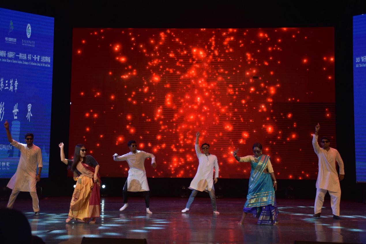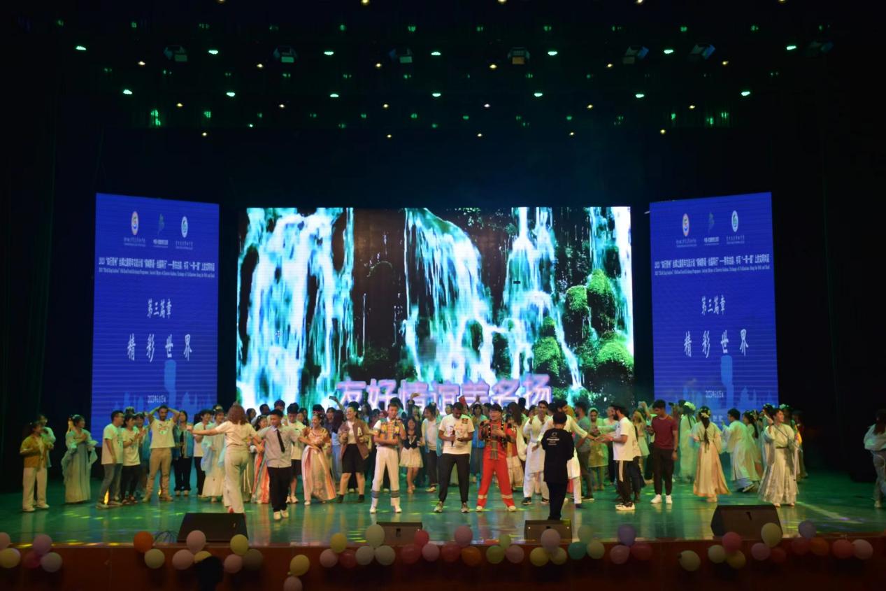 在“精彩世界”篇章中,铜仁幼专、贵州健康职业学院的青年学子们与来自深圳大学、长沙理工大学、井冈山大学的国际学生联合演出,为现场观众带来国际模特秀《Romanticise》、印度舞《Dandiya》、合唱曲目《登鹳雀楼》等表演,展现世界多元文化,体现中外学生共同致力于国际文化交流,实现文化在交流中传承、发展与创新。
