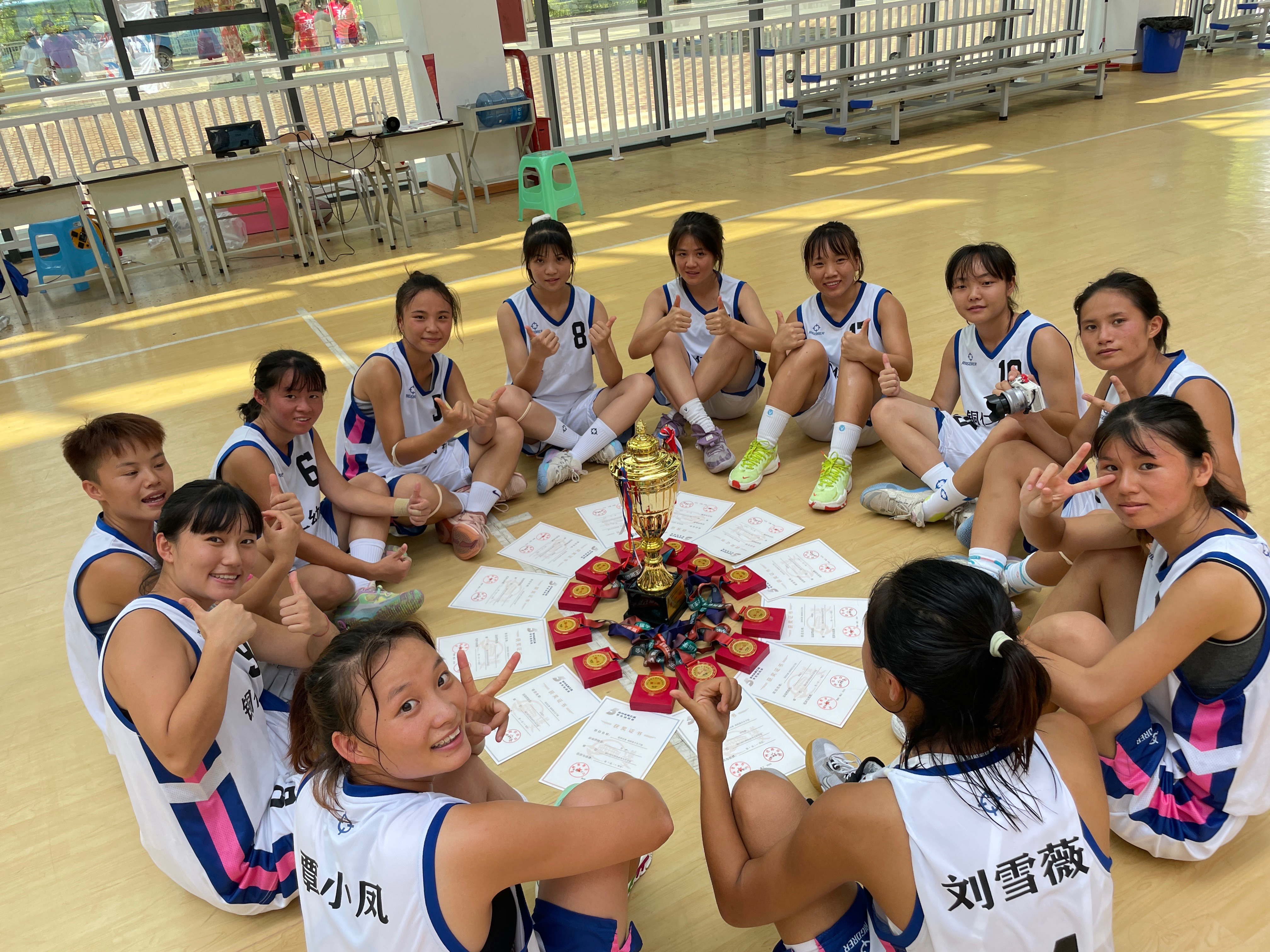 在校期间,在学校领导的支持和主教练罗艳老师的带领下,球队在各方面都取得了优异成绩。2020年11月,代表学校参加“贵州省大学生篮球赛暨CUBA选拔赛”获得第五名;2021年10月,参加“贵州省大学生篮球赛暨CUBA选拔赛”获得第三名;2022年8月,参加“贵州省第五届大学生运动会”获得第一名;被授予铜仁幼儿高等师范专科学校2022年度“为仁奖”。姑娘们用行动诠释了拼搏进取的幼专精神,让我们向主教练罗艳老师和全体队员致敬!她们用实际行动告诉我们:“四肢发达,头脑却不简单”,她们用自己的青春与汗水为体育生正名——“体育生能文能武,关键时刻爆发力极强。”