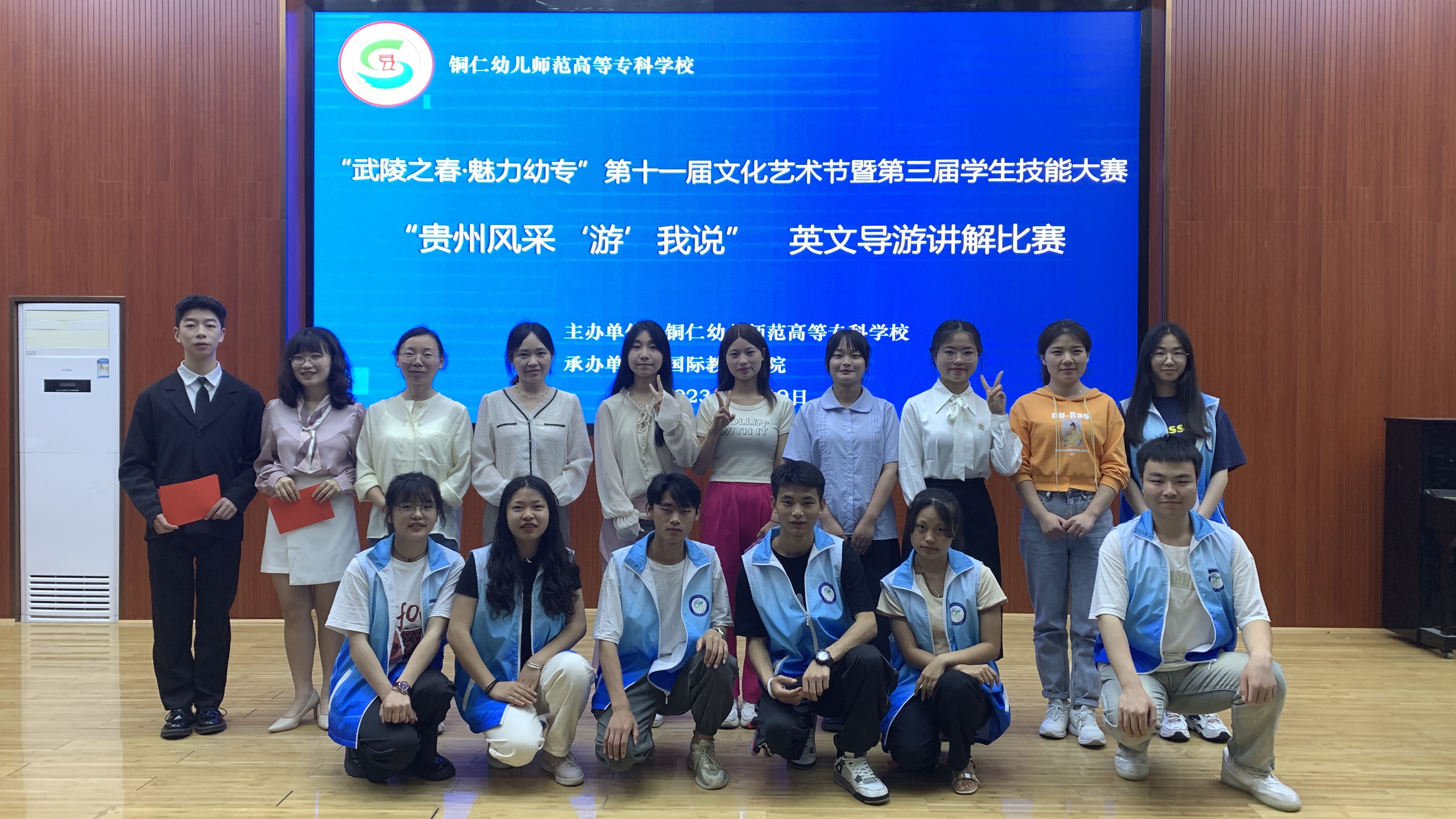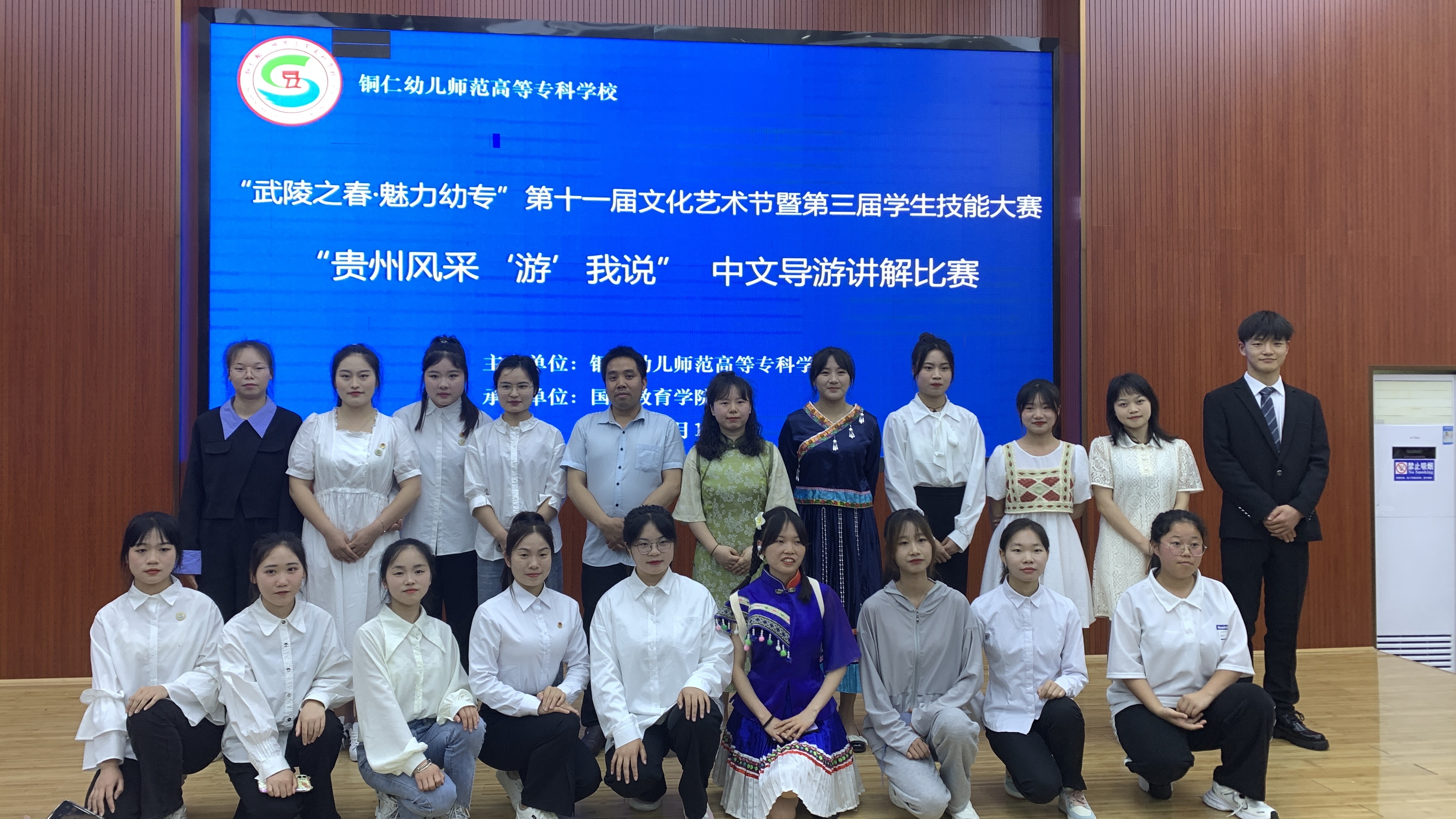 为进一步加强旅游行业恢复发展人才的支持,贯彻党的二十大报告中“以文塑旅,以旅彰文”的精神,我院用实际行动将旅游主题活动融入日常教育教学,激发旅游专业学生学习新动力,提升学生综合素质和强化旅游专业认知,提高我院人才培养质量。在第十三个“中国旅游日”,5月19日我院在三号、四号阶梯教室分别成功举办“武陵之春·魅力幼专”第十一届文化艺术节暨第三届“贵州风采‘游’我说”为主题的中英文导游讲解大赛。本次导游比赛由国际教育学院教师姚登明、冯寻烨、杨政宇担任中文导游讲解比赛评委,国际教育学院教师白静、雷小燕、田萃薇担任英文导游讲解比赛评委。