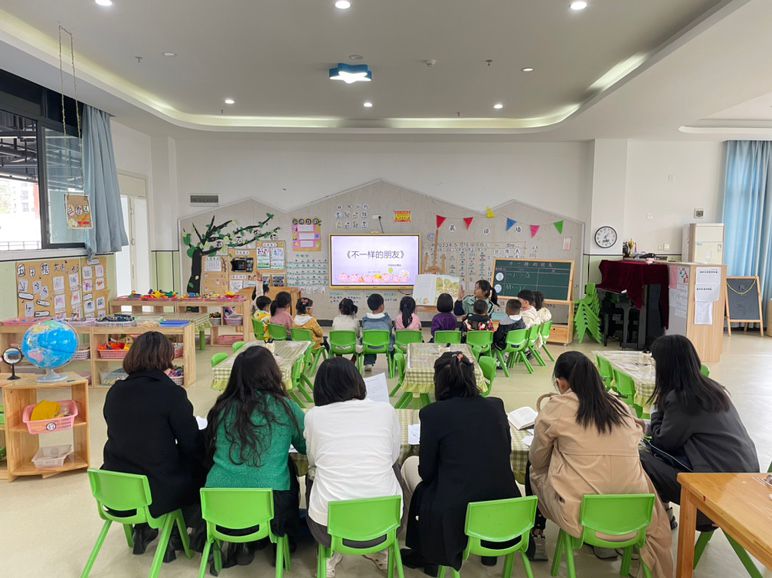 教研活动上,秦莎莎以《不一样的朋友》为主题,为课程组教师带来一次理论与实践相融合的展示,并在活动结束后向大家介绍活动组织与实施的相关思路和依据。全体教师就社会教育集体教学活动设计要素、组织与实施的具体过程、活动设计依据及目的等展开交流研讨。通过该活动,幼儿园教师从一线实践的角度明确了自身活动组织与实施的方向,课程组教师则立足园所教育的实际需求反思了自身课堂教学,并为课堂教学的改进提供了方向。