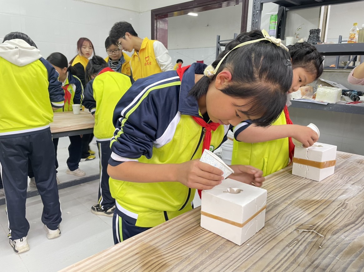 孩子们利用课后延时服务时间参加非遗职业体验活动,零距离体验非遗文化,深层次感受非遗文化的艺术魅力,在体验活动中汲取知识、开阔眼界。“陶艺制作看似简单,没有长时间的练习,想做好还是有一定难度的。”陶艺工作室负责人邓伟老师说到。“这个学生在剪纸体验活动中非常开心,她这40分钟内说的话比之前一个月说的还要多。”铜仁市第二十小学带队教师说到。“这是我今天的剪纸作品,老师的讲解很详细,我一次就剪好了!”孩子的脸上洋溢着开心的笑容。“我吹响笛子了!”“我也吹响了!”在箫笛体验活动中学生们小脸通红,手舞足蹈。