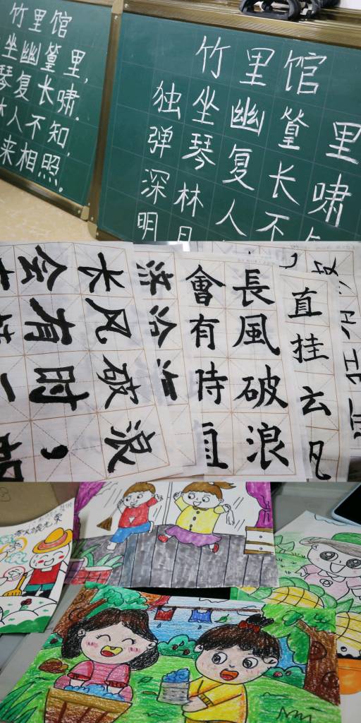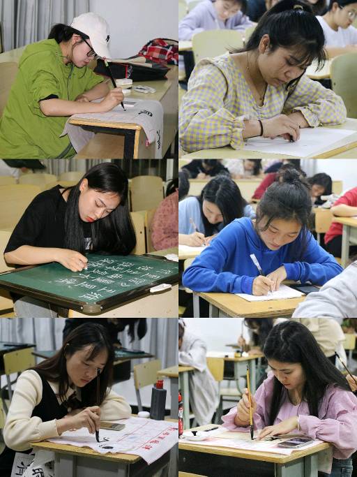 此次比赛包括粉笔字、钢笔字、毛笔字、简笔画项目,共185名选手参赛,选手可同时参加多个项目。粉笔字书写内容统一为古诗《竹里馆》,钢笔字书写七言律诗《七律·长征》,毛笔字书写“长风破浪会有时,直挂云帆济沧海”诗句,简笔画以“劳动节”为主题绘画。有限的比赛时间里,选手们在赛场上提笔淡定,落笔苍劲,一笔一画中,汉字之美被参赛选手展现得淋漓尽致,粉笔字工整清秀,钢笔字苍劲隽美,毛笔字遒劲流畅,简笔画色彩明丽,一幅幅作品跃然纸上,妙笔生花,墨香满堂,用笔墨充分挥洒同学们的青春芳华。
