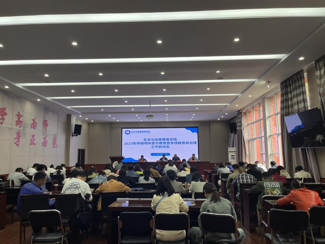 为深入贯彻落实学校会议精神,进一步推进师德师风建设,打造作风过硬、师德高尚的教师队伍,强化育人事业心和责任感,近日,艺术与体育教育学院召开2023年师德师风警示教育暨专项教育和治理工作启动会,党总支书记万昊主持会议,全体教职工参会。
