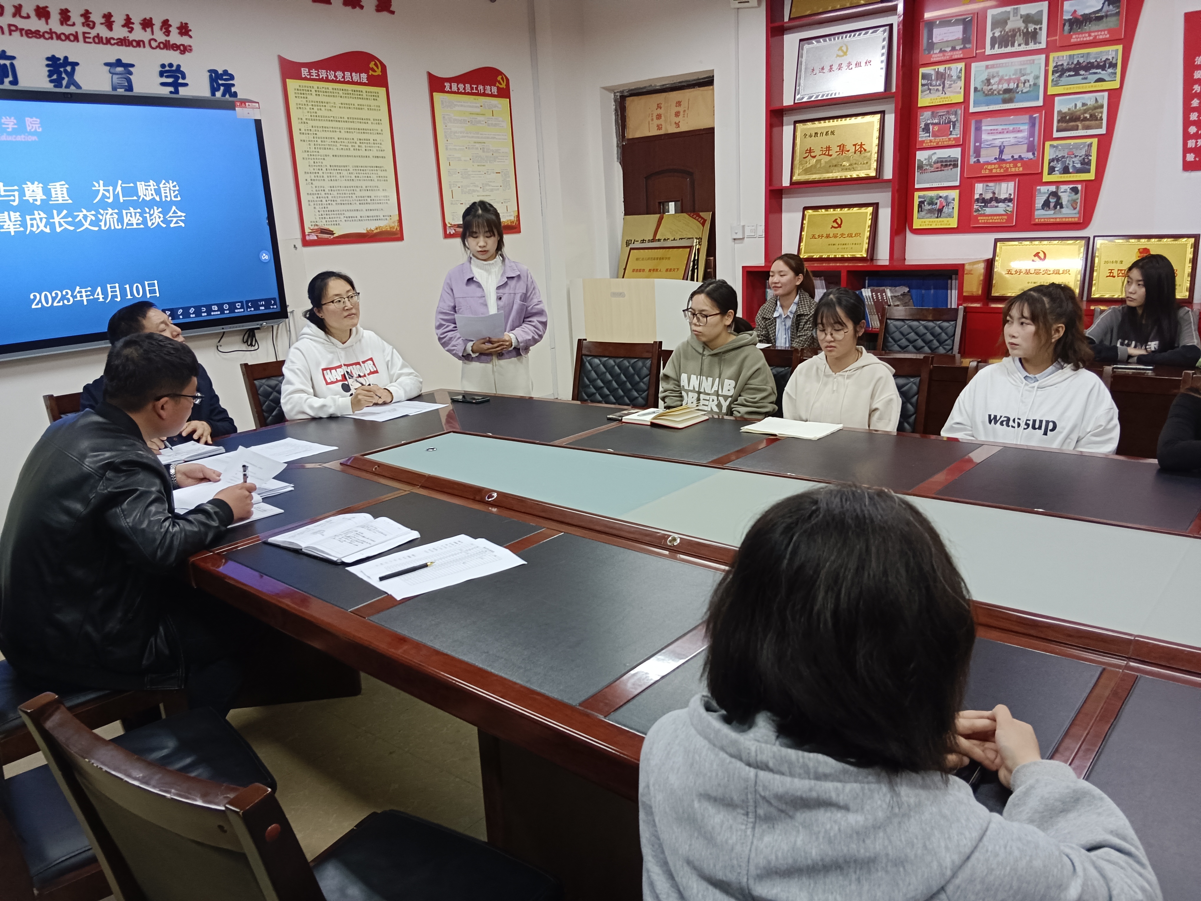 为培养家庭经济困难学生的自立自强、勇于担当的精神品质,坚持“扶贫”与“扶志”相结合、“经济资助”与“资助育人”相结合,助力家庭经济困难学生成长成才。学前教育学院4月10日在会议室举办了特殊困难学生“朋辈成长交流座谈会”。学前教育学院党总支书记卢道静、学前教育学院党总支副书记孙静参加了座谈会,本次活动由学生科副科长李龙龙主持。