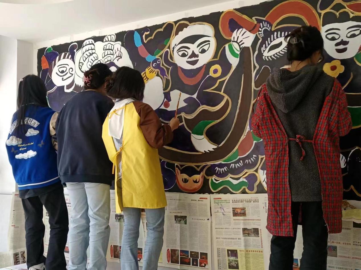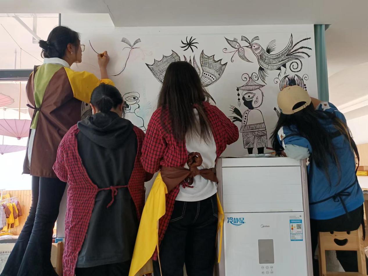 劳动所创造的美,不仅表现在他们呈现出的一幅幅精美作品上,更体现在劳动过程中对参与者身心锻炼的价值。正如孟子所言:“天将降大任于是人也。必先苦其心志,劳其筋骨,饿其体肤......”。参与墙绘活动的同学们表现出了极高的吃苦耐劳精神,他们甚至舍弃了中午的休息时间,饭后便立即投入绘画创作中。通过这次墙绘活动,同学们不仅体验到了绘画的乐趣,更在劳动中磨砺了自己坚韧不拔的品质。