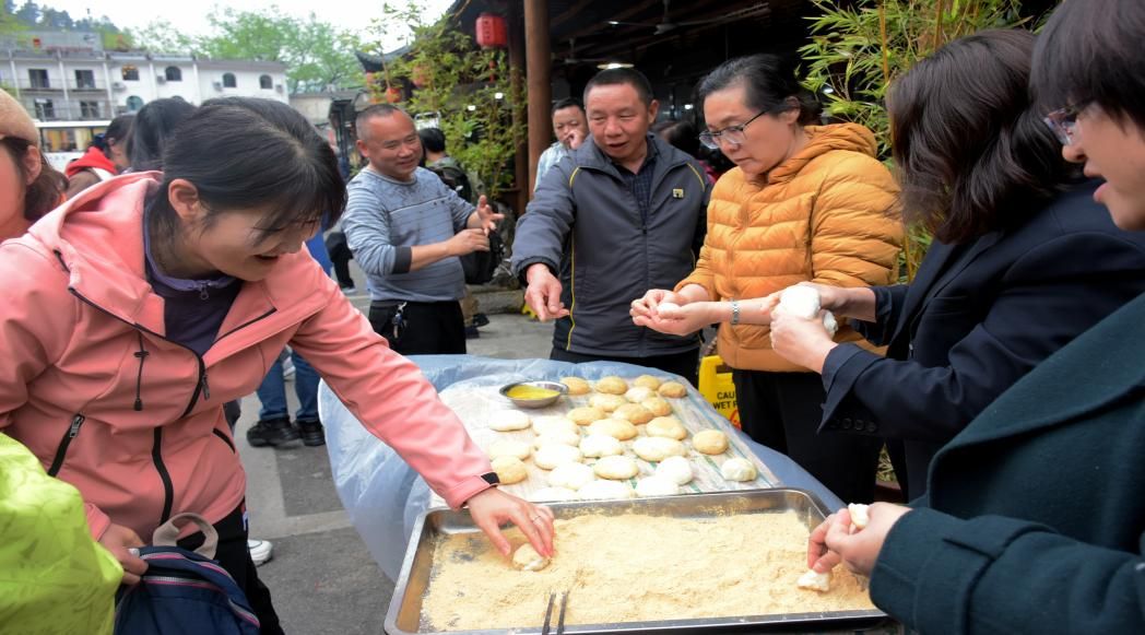 在“溯溪徒步·感受梵净山生态文化”时,大家沿着梵净山脚下的步道溯溪而上,聆听梵净山潺潺溪水,欣赏沿途自然美景,辨识各类稀有植物,增长了见识。在“品梵净山茶·传梵净山茶文化”时,旅游学校教师龙颖用简易的茶具布置成席,用梵净山泉泡梵净山茶,大家边品尝各款茶的不同味道,边听如何识茶、辨茶、泡茶和品茶,了解了不同类别茶的品质与风味,丰富了知识,弘扬了茶文化;在“打糍粑·重温铜仁民俗文化”时,大家齐心协力、密切协作、捶拉打捏、揪团蘸品,热烈的气氛吸引许多游客驻足并参与其中,同时向游客宣传当地传统民族文化,激起了游客们的浓厚兴趣。