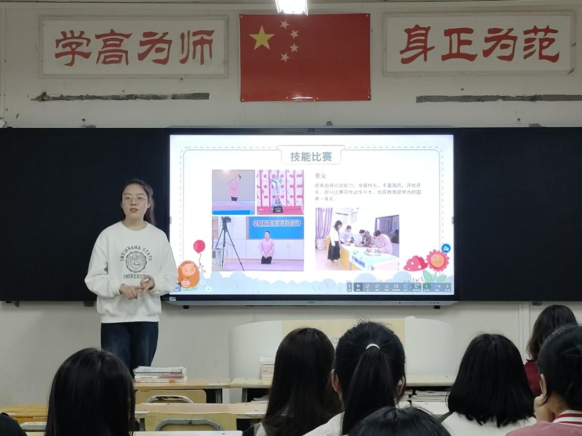 交流会上,潘婷从学业规划、教资考试、专升本三个方面来展开分享。她不仅通过分享自己的学科学习方法、展示学习笔记与备考资料来帮助同学们更好地理解和学习,还结合个人经历推荐了相关书籍与学习资源,希望同学们能够不忘学习本心,走向人生梦想的新起点。朱泓楸从技能大赛参赛经验、见习(实习)要求、就业方向三个方面展开交流与分享,并结合在见习中遇到的例子生动地告诉同学们在遇到困难时应该如何去应对与解决,提醒同学们维护自身利益。在交流答疑环节,同学们提出了关于专业课程学习方法、所需专业证书、专衔本和专升本的区别以及今后的工作环境、技能要求、薪资待遇等问题,两位学姐均给予了耐心的回答。最后,王敏老师对相关问题进行了补充,并对活动进行了总结,希望同学们树立好学业目标、做好学业规划、扎实打牢专业基础,期待大家都能通过努力实现自己的青春梦想。整个活动在轻松愉快的氛围中落下帷幕。