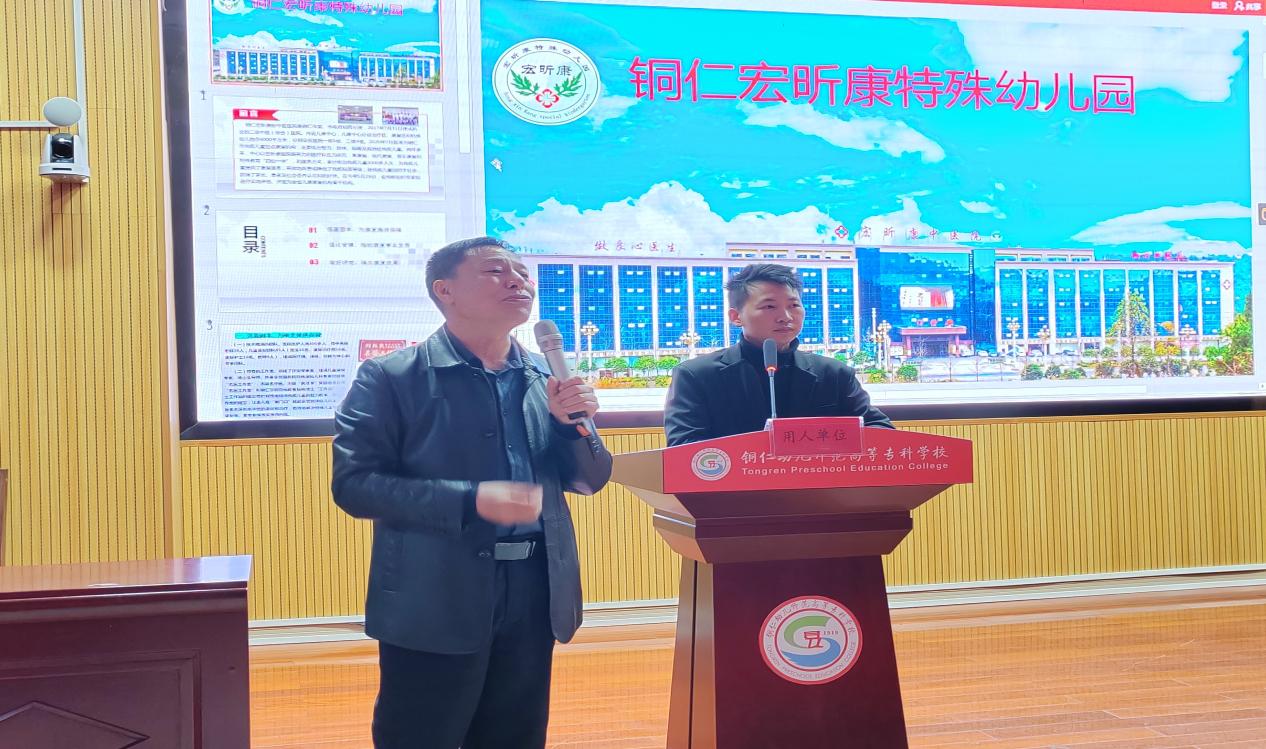 3月15日,学前教育学院在二号阶梯教室举办“爱与尊重•为仁引航”2023届毕业生招聘会,此次招聘会特邀铜仁宏昕康特殊幼儿园园长丁胜参加。