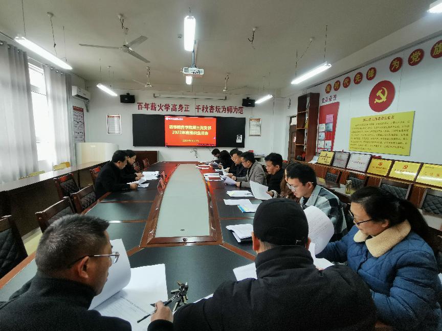 3月17日下午,初等教育学院第三党支部在党员活动室召开了2022年度组织生活会暨民主评议党员大会。会议由支部书记杨胜茂主持,督导组组长、学院党总支书记李方泽和督导组成员郑静对本次会议进行督导,支部全体党员参加了会议。