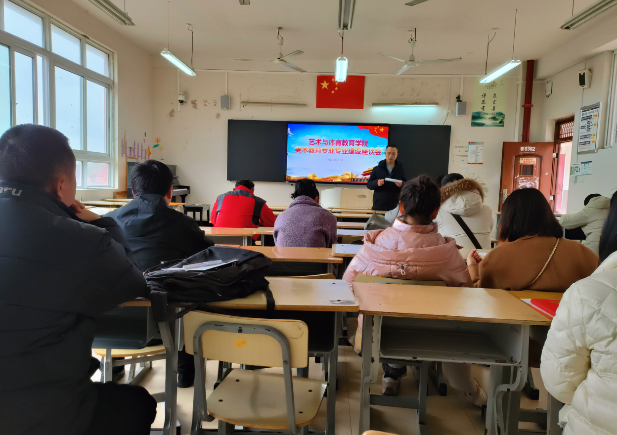 3月21日,艺术与体育教育学院美术教育专业在教学楼8302教室举办专业建设座谈会。座谈会由艺体第五党支部书记、美术专业负责人李宗奎主持,美术教育专业全体教师参加。