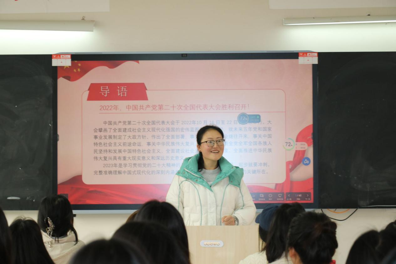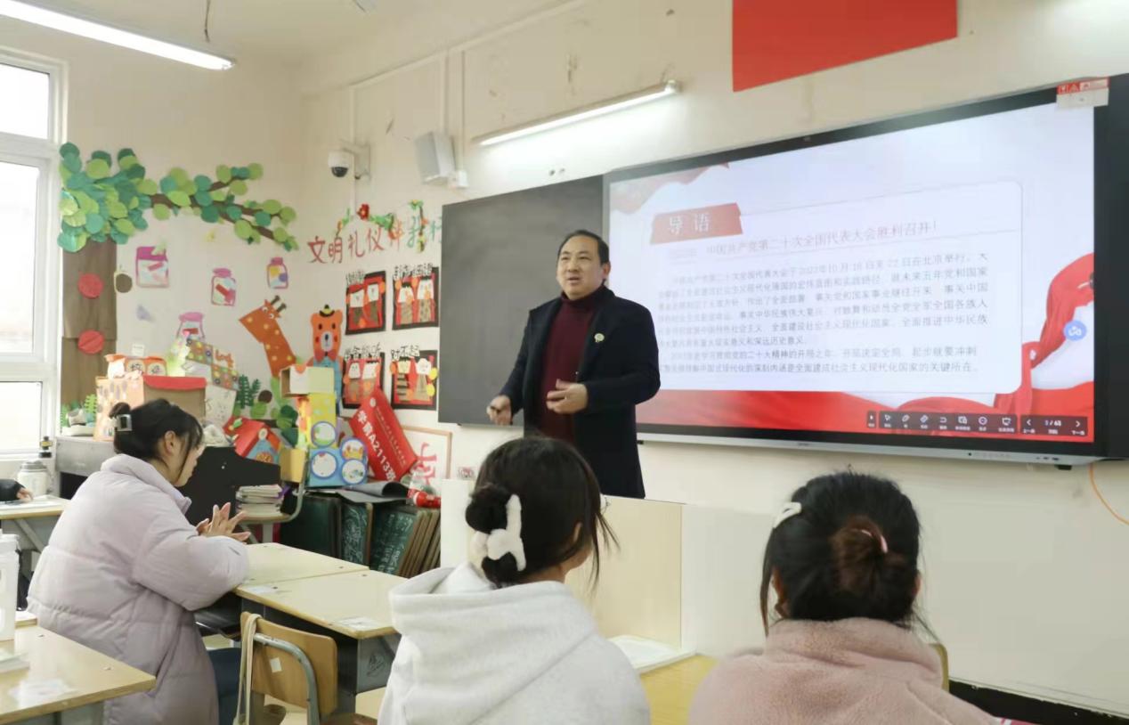 学前教育学院党总支书记卢道静、副院长代晓明分别在3401、3403教室授课。党总支书记卢道静以雷锋精神为例,引导学生带头弘扬社会主义核心价值观,做有道德原则、道德品质的人,对学生提出殷切希望,要牢记使命,不忘初心,做有理想、敢担当、能吃苦、肯奋斗的新时代好青年,努力成长为堪当民族复兴重任的时代新人。代晓明以中国共产党第二十次全国代表大会胜利召开为导入,从“新时代新征程中国共产党的中心任务”“正确理解和大力推进中国式现代化”“两个100年奋斗目标”三方面,鼓励学生将自己的青春梦融入中国梦,让青春在推进中国式现代化中绽放绚丽之花。