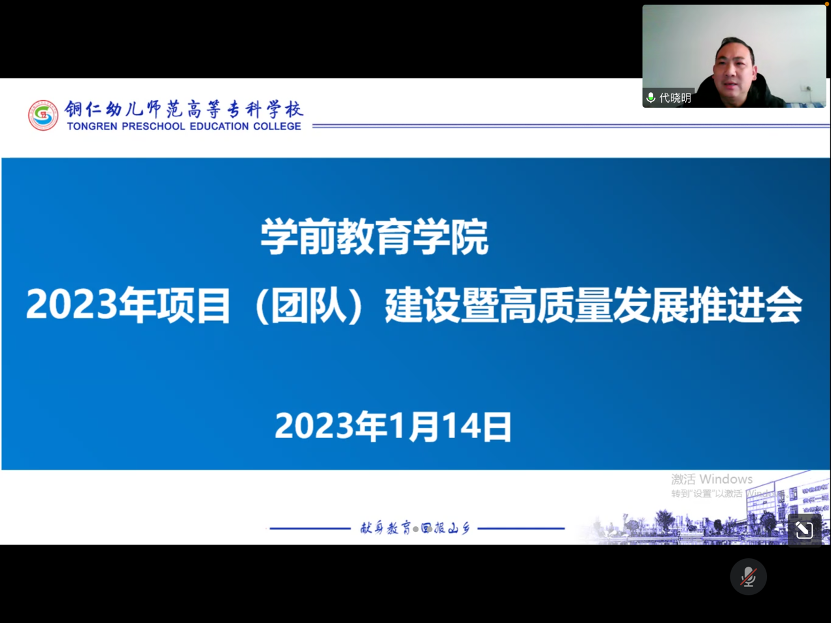 近日,学前教育学院召开2023年第一次团队(项目)建设暨高质量发展线上推进会。校党委委员、副校长杨会新出席会议,学院班子成员、各科室负责人、专业负责人以及项目(团队)负责人参加会议。会议由学院副院长代晓明教授主持。