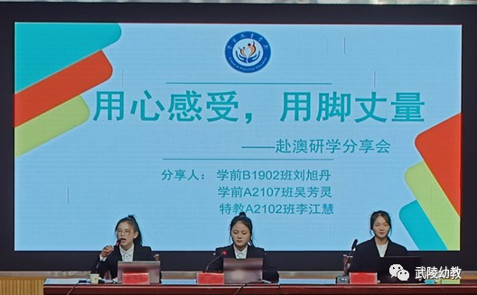 12月13日,学前教育学院在一号阶梯教室开展赴澳研学分享会,学前B1902刘旭丹、学前A2107吴芳灵、特教A2102李江慧分享此次去澳门研学感悟。