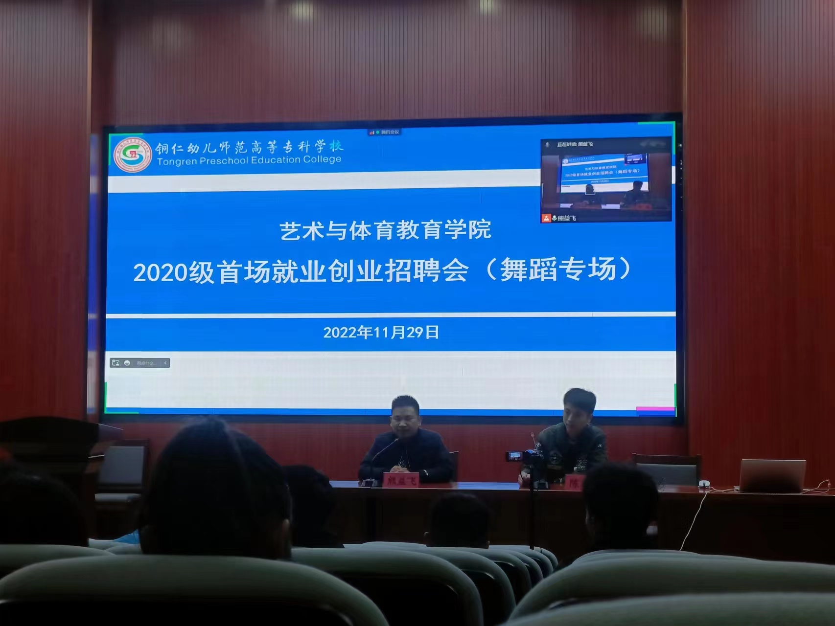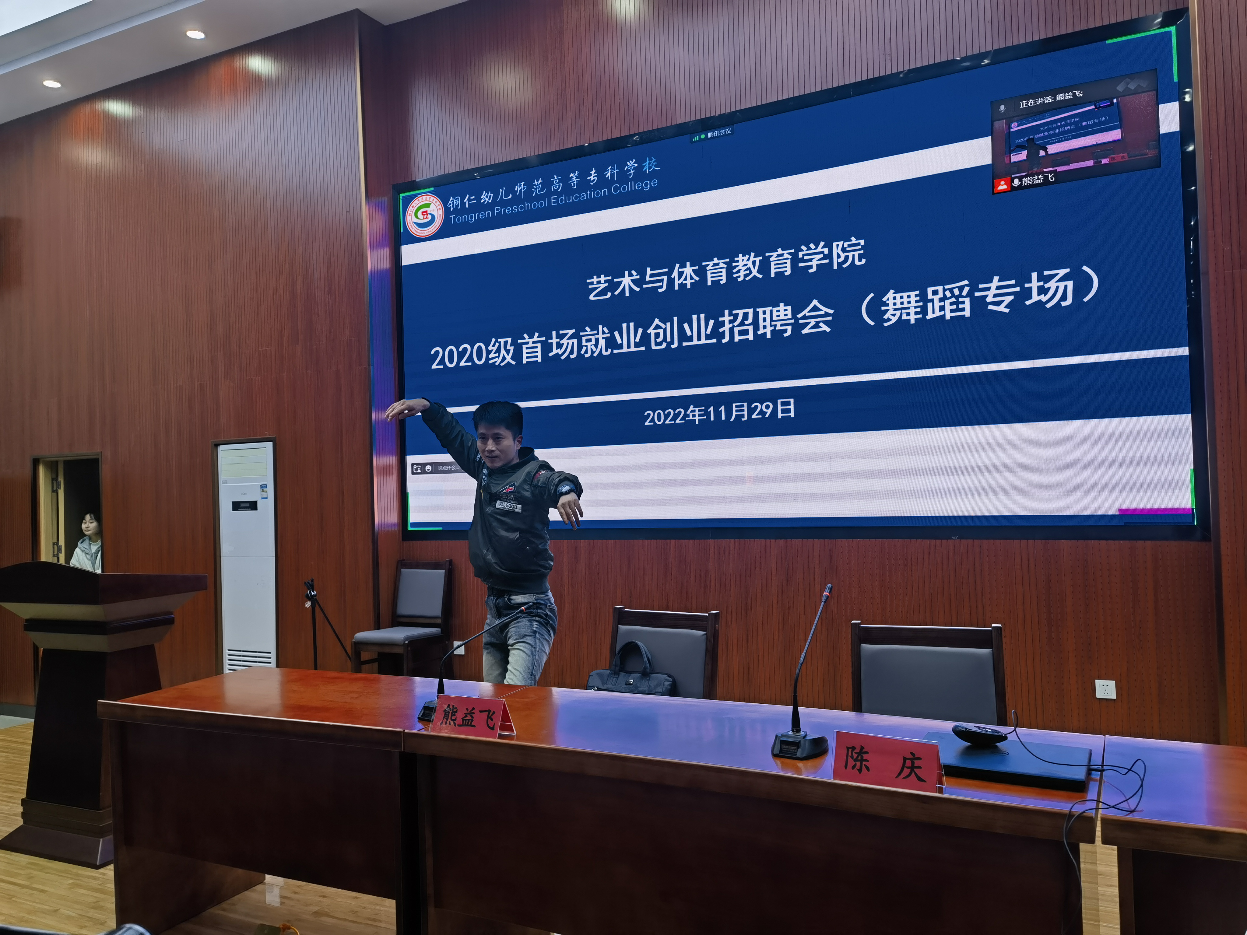 11月29日晚,艺术与体育教育学院2020级毕业生首场就业创业招聘会(舞蹈专场)在三号阶梯教室开展,由吉祥舞蹈培训学校校长陈庆到现场开展招聘宣传,艺体学院学生科副科长熊益飞主持,2020级舞蹈专业实习生通过腾讯会议聆听宣传,2021级舞蹈教育、舞蹈表演学生现场聆听宣传。