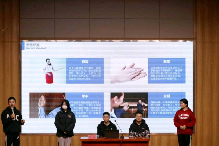 周兴分别从礼仪介绍、仪表仪态、商务礼仪、办公礼仪四方面讲述,通过本场讲座同学们对不同场所下应具备的规范举止与礼仪要求有了一定的了解。讲座过程中,周兴邀请同学们上台演示幼儿教师基础礼仪:站姿、坐姿、走姿、手势等,并进行了细致点评和纠正,现场氛围十分活跃。