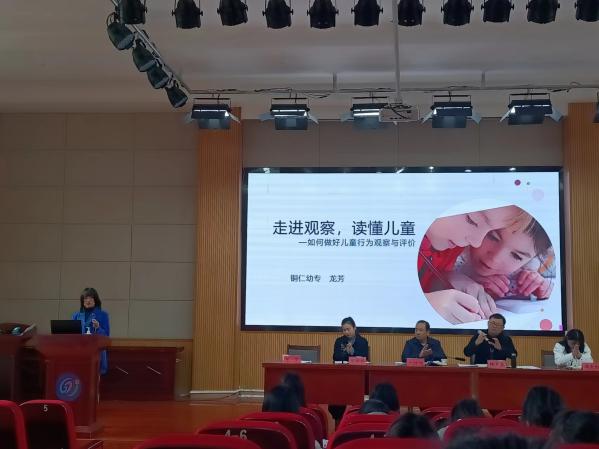 冯大红为参会学生讲解了《新时代幼儿园教师职业行为十项准则》内容,指出同学们在见习中要严格遵守教师职业道德,提升师德修养,为成为合格的幼儿园教师涵养师德。杨启慧介绍了专业学生教育见习(研习)的组织与管理、时间安排、见习内容和工作要求,强调了师范专业认证见习、研习需要整改的问题和措施。之后,龙瑶芳老师对见习学生提出入园管理要求。龙芳为参会学生开展《幼儿园行为观察和评价》培训,帮助同学们做好幼儿的观察及记录。