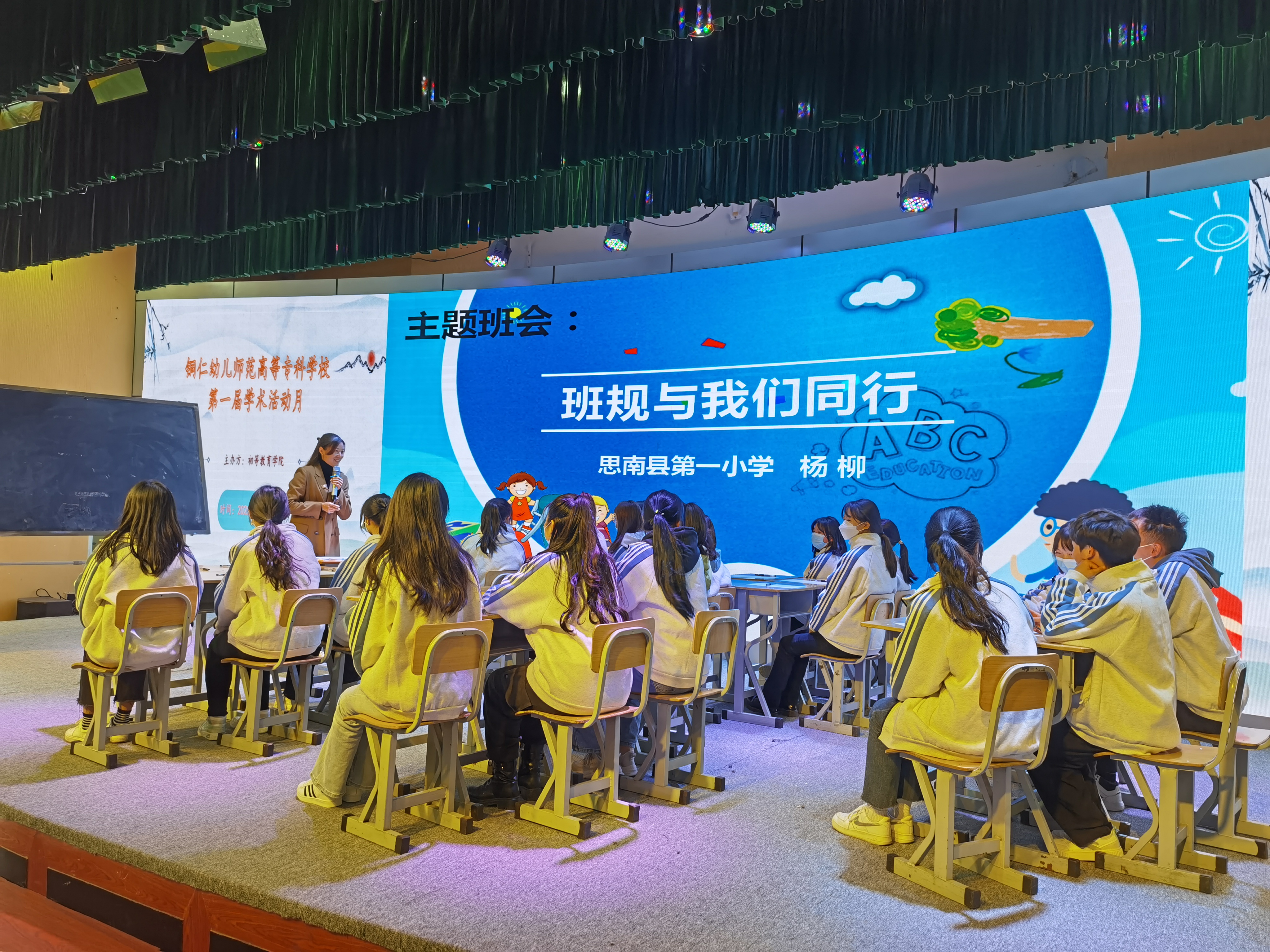 11月15日,思南县第一小学陈小玲校长以及李旭、翁小红、杨柳三位教师,为我院学生开展了三场示范课及一场讲座。李旭老师展示了小学数学五年级上册《植树问题》课堂教学,其清晰的逻辑思维、风趣幽默的语言以及复杂问题简单化的能力,让同学们深感佩服,很受启发;市级骨干教师翁小红带来了小学语文六年级上册《桥》的展示课。其先进的教学理念,崭新的教学方法,灵活多样的教学手段,声情并茂自然大方的教态,幽默风趣的教学风格,让在场的学生们赞叹不已,同时也让学生深刻地体会到了学习的重要性和紧迫感,对语文教育有了更新的认识,进一步积淀了教学素养;杨柳老师开展了《班规与我们同行》班级管理示范课,她通过小组游戏互动导入的方式,由浅入深,分别从卫生、纪律、学习、文明礼仪、班级活动等五个方面与临设课堂的学生们展开讨论并分组进行了班规的制定,循循善诱让孩子们找出问题中的规律,讲座结束,赢得在场师生阵阵热烈的掌声。最后由思南县第一小学党支部书记、校长陈小玲为我们带来的精彩讲座《怎样做一个时代所需的好老师》。陈小玲校长通过自身的教学经验和教学理念向我们讲述了新时代教师理念,她在讲座中提到,在社会眼中,教师似乎是“神圣”的,不管是在教学中还是在生活中大家对教师的要求和观念都是具有规范性的,例如教师的穿着打扮、言行举止都会影响一个教师留给别人的印象。除了教书育人外,新时代的教师还担当着不同的角色。面临着时代的考验,新时代的教师要迎难而上,做学生的引路人,不断锤炼人格品质,不断树立理想信念,奉献祖国,献身教育事业,为学生照亮前行的路!