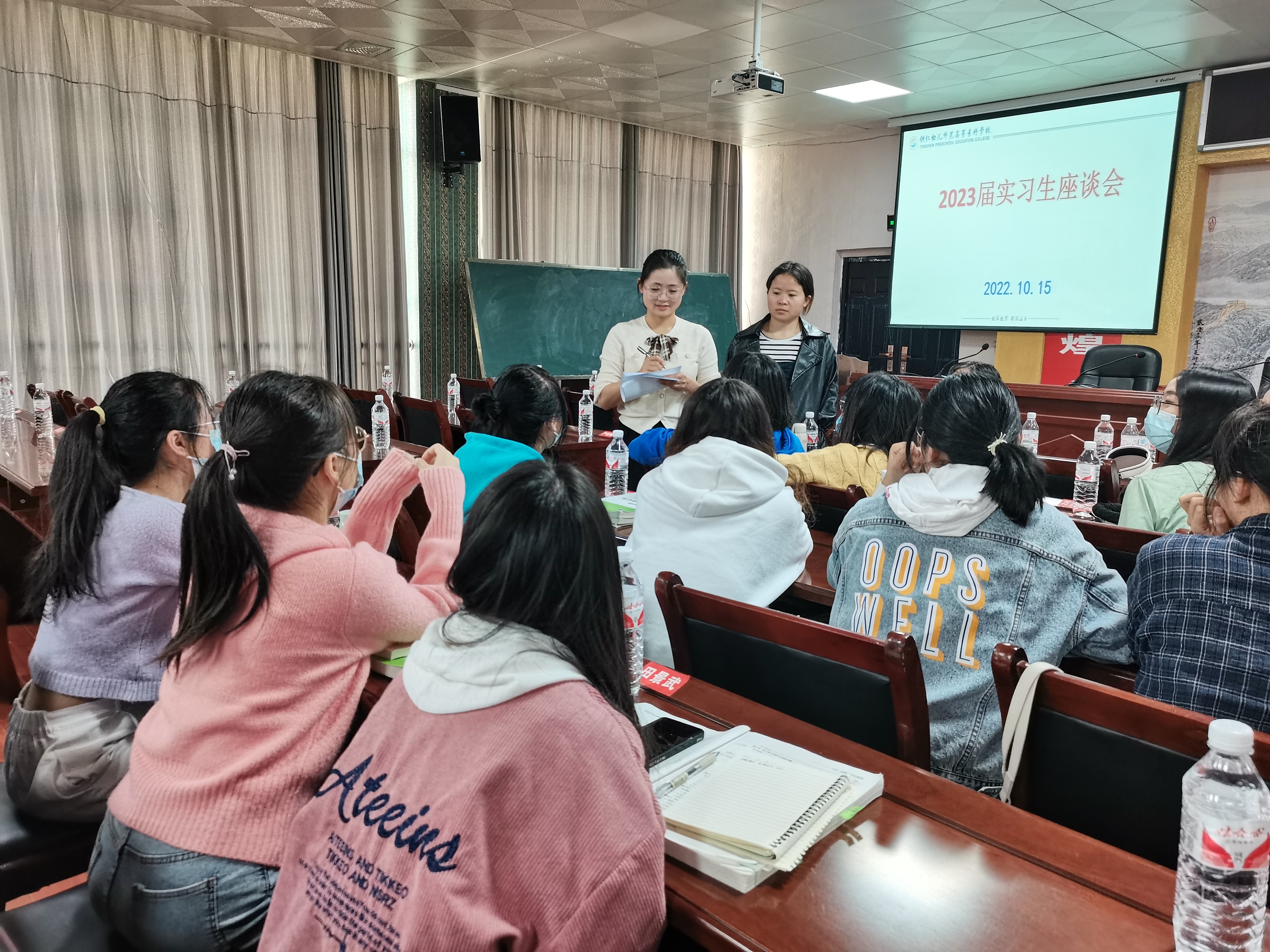 培训结束,分别召集了2场共50余名实习生召开了座谈会,一是传达学院领导的要求,告知学生要严格遵守疫情防控要求,注意寝室用电安全。遇到问题和困惑要主动跟指导老师或者班主任反馈。二是了解实习手册完成情况,实习过程中的收获和困难。