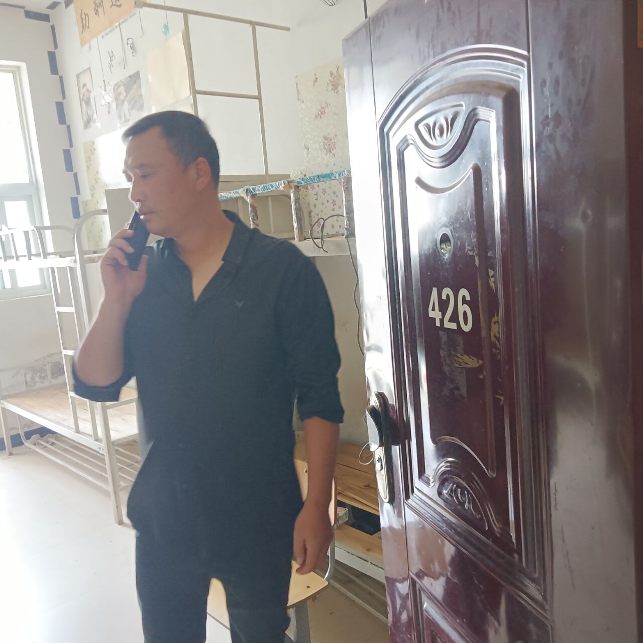 谢宣明副科长对男生宿舍排查